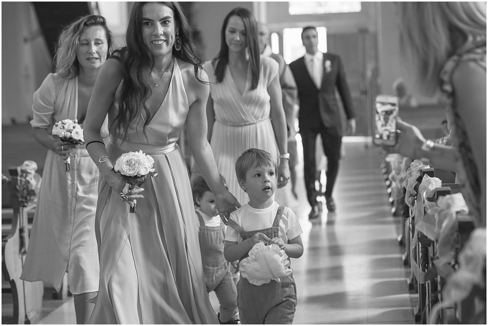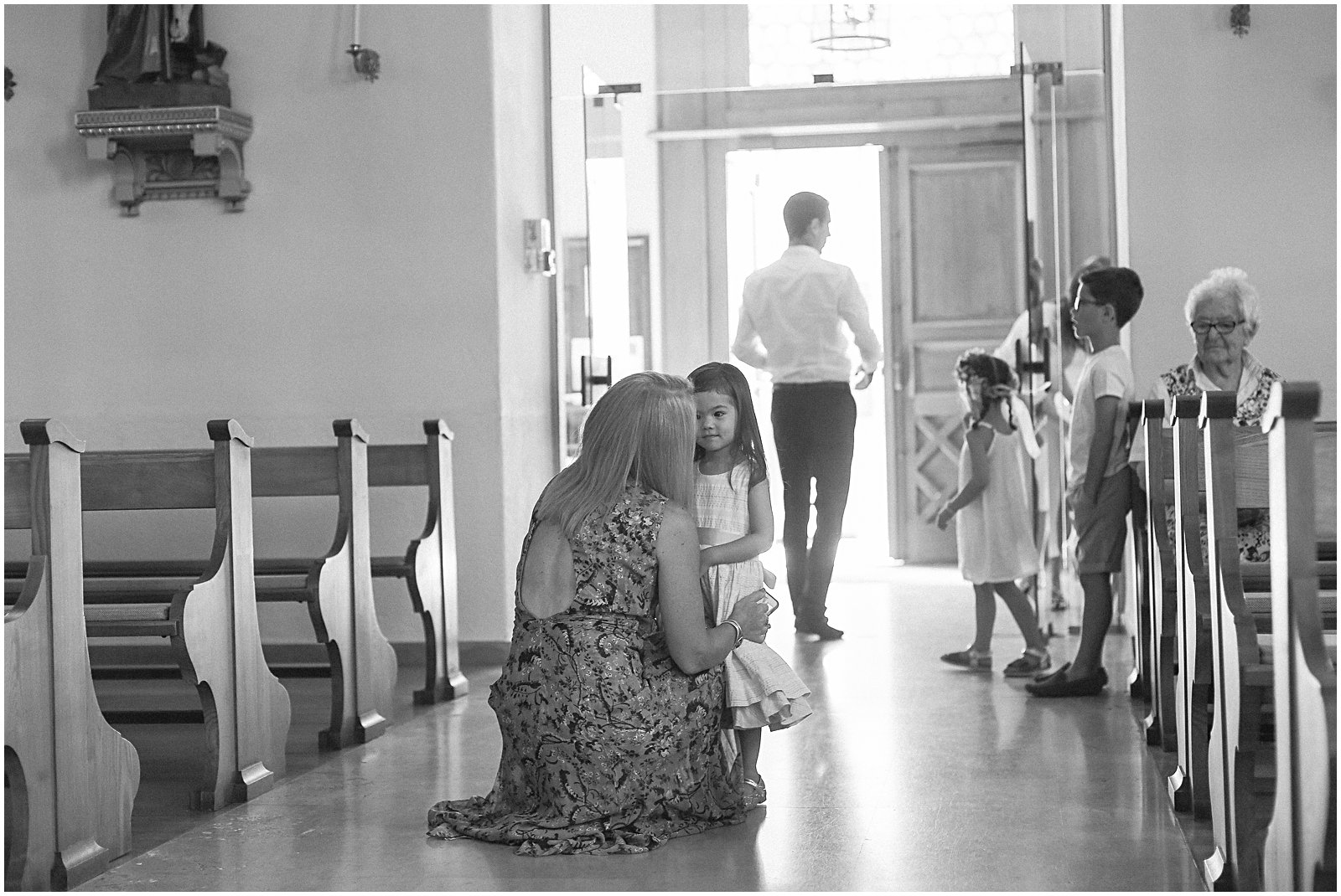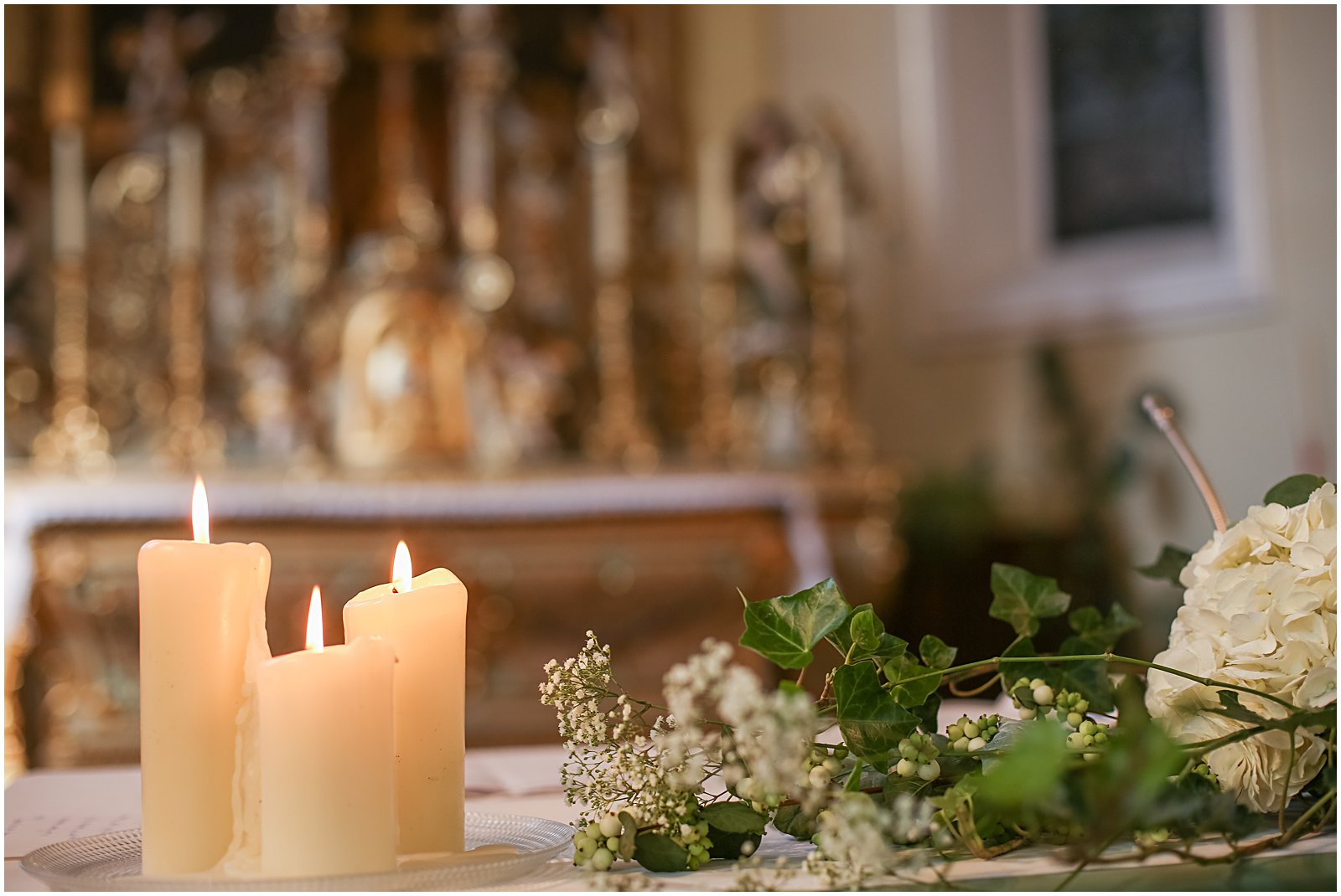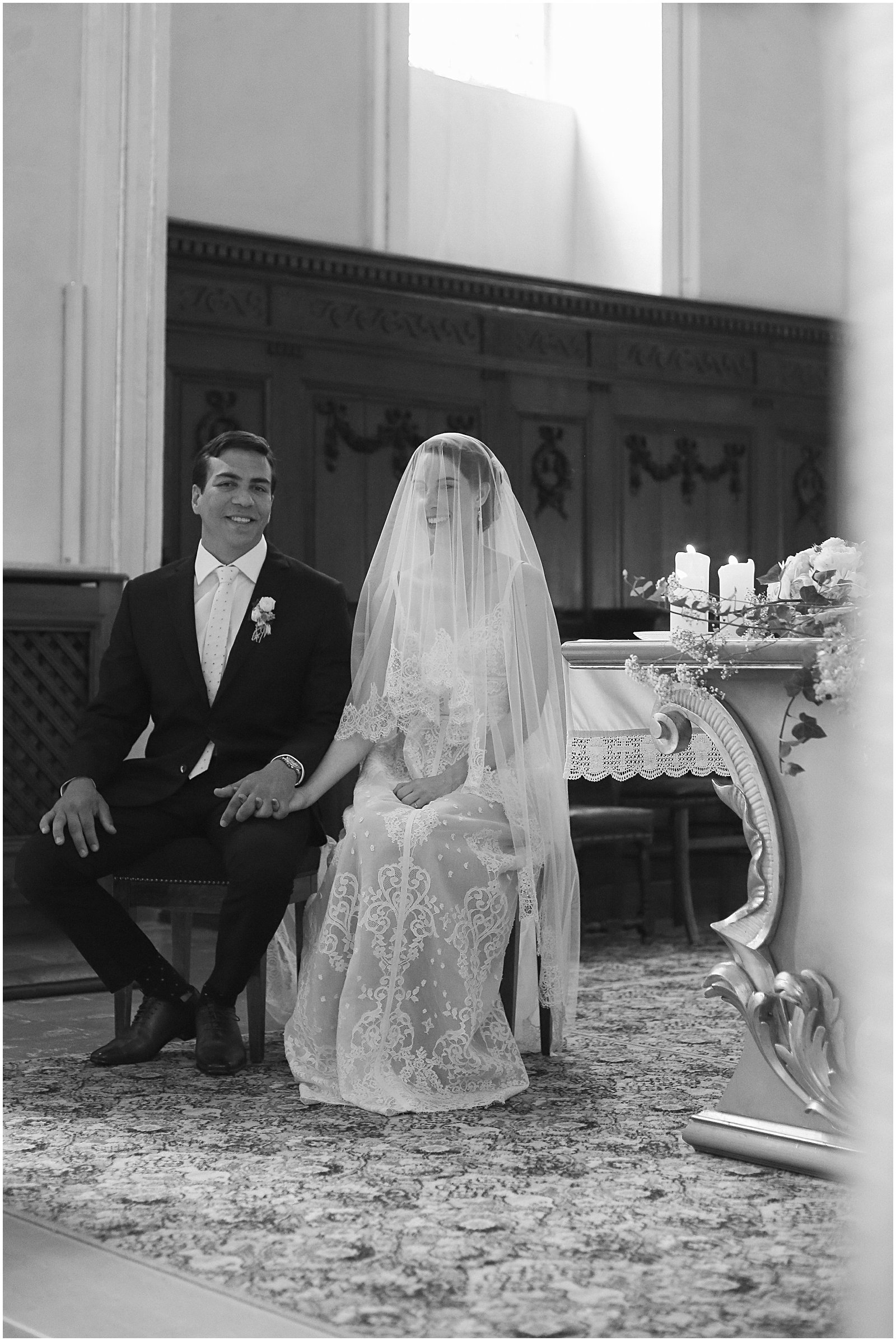 I arrived with my wedding assistant (ahem: studio manager…and husband) to the most beautiful church (Saint Rémi) in the small French village of Wettolsheim, right outside of Colmar. Alex so graciously came along as my second shooter, and I’m so glad he did as we were able to get twice as many portraits of Keriann and Daniel walking down the aisle – and from above the church (such a great vantage point of the entire room)!