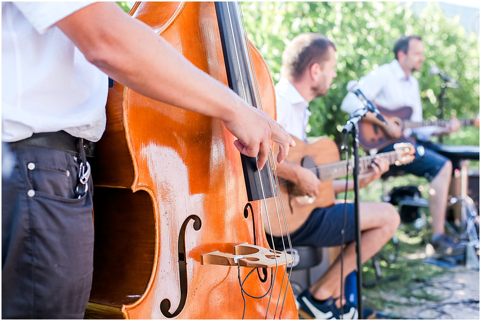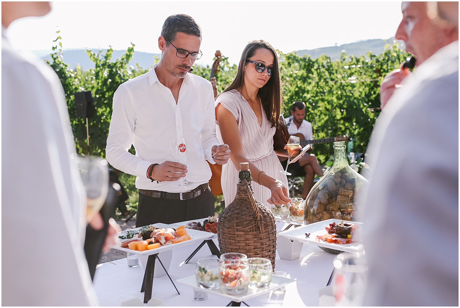 A live string band played jazz as the guests grabbed drinks and nibbled on aperitifs before the sunlight lowered itself behind the mountain and dinner began.