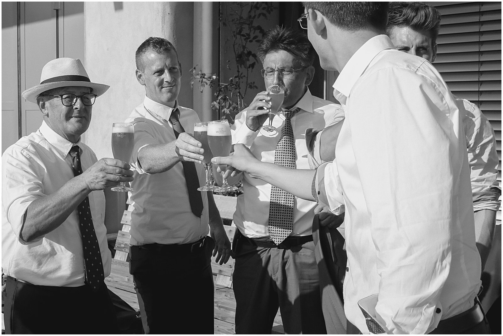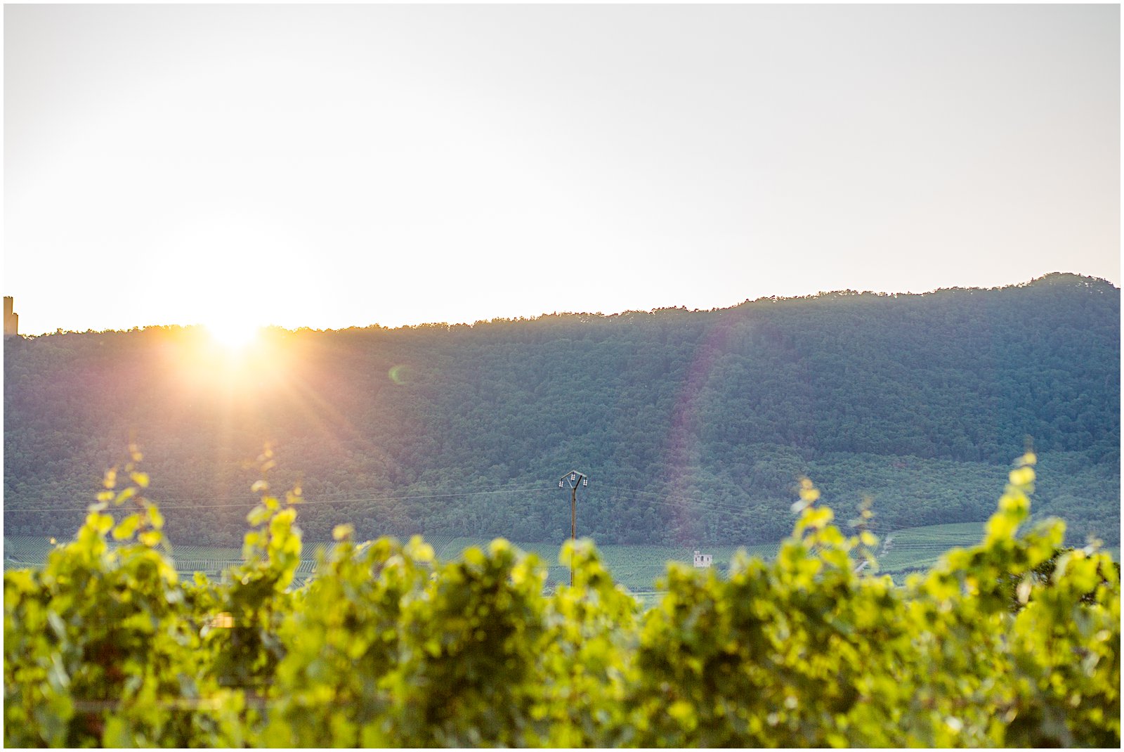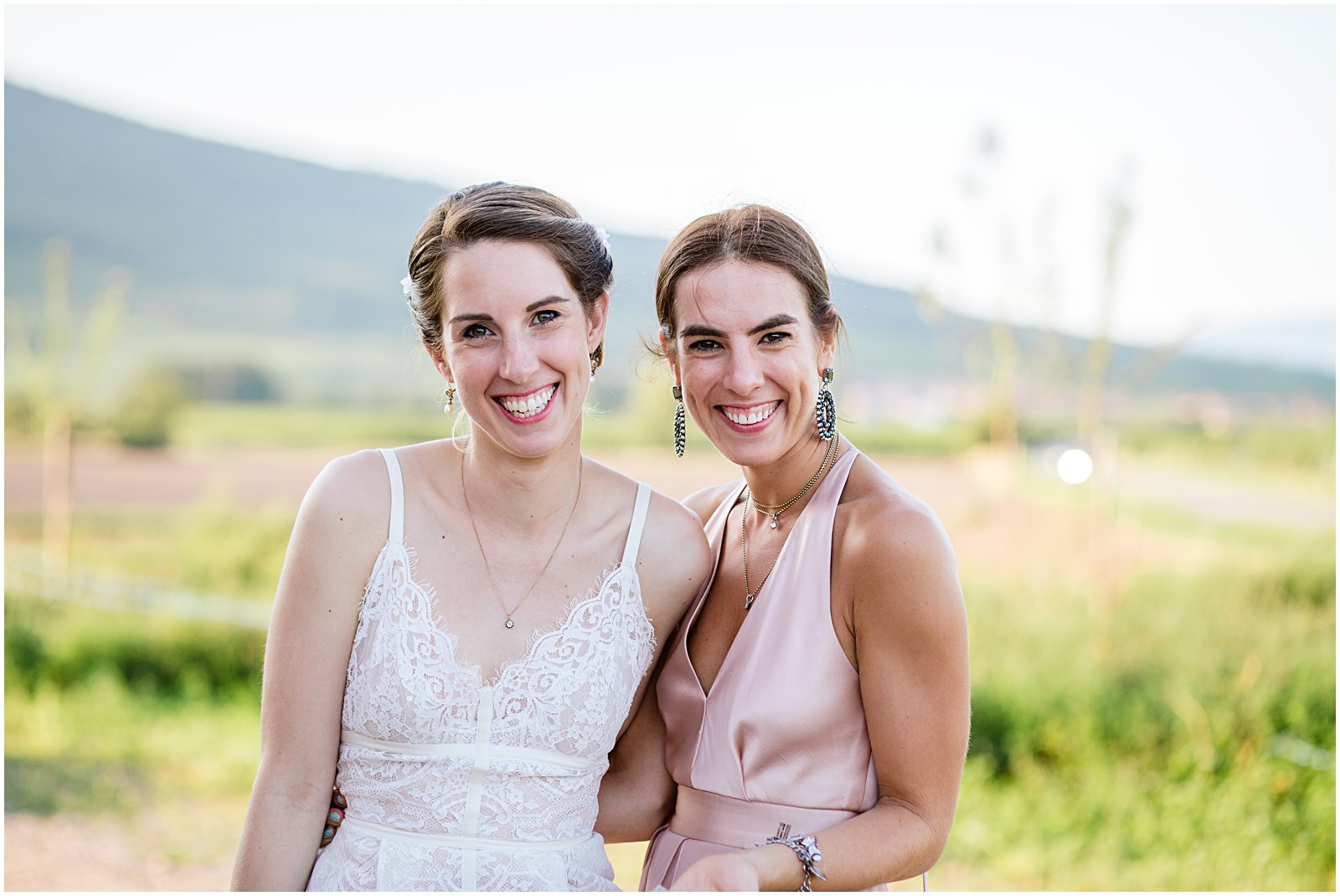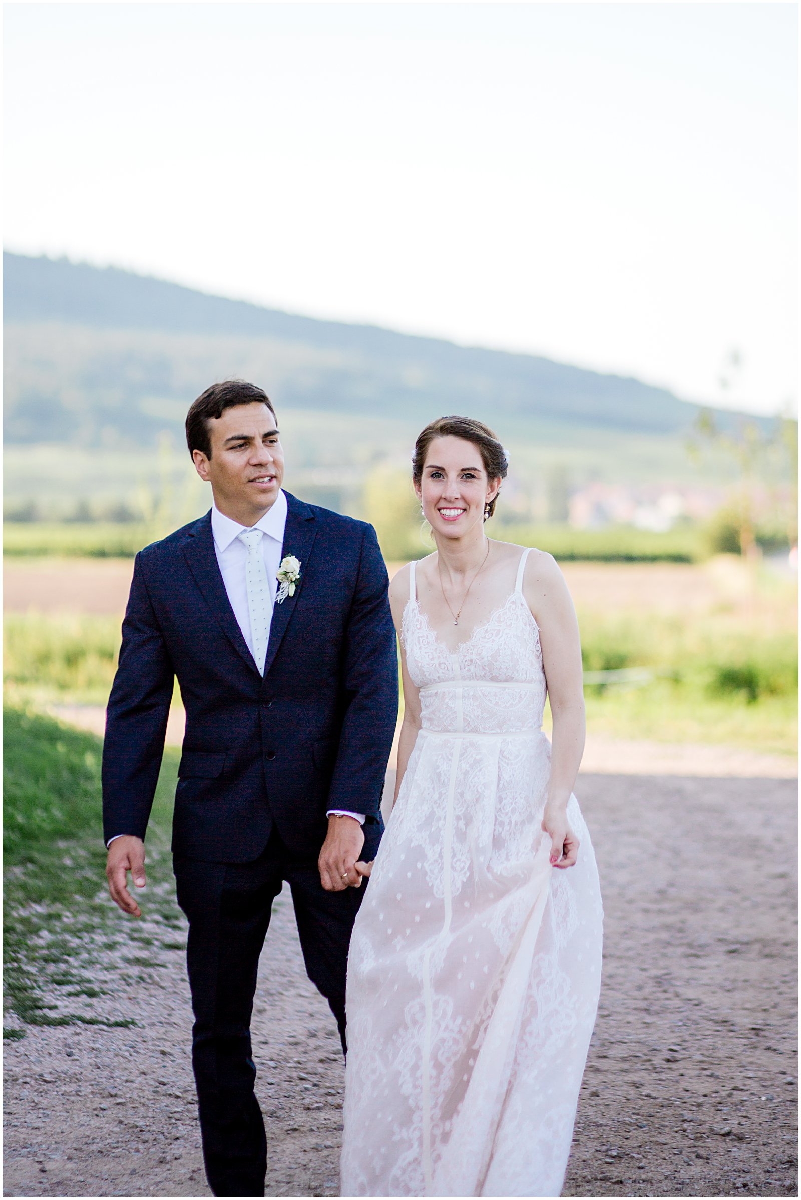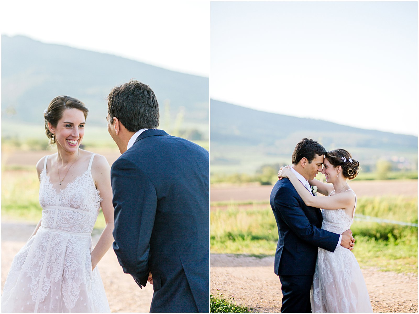 As golden hour began, I brought Keriann and Daniel to the open shade with the Alsacian mountains behind them, and while my assistant Alex distracted her 3 year old with some wildflowers, I documented some sweet, natural moments of the two of them and their friends.
