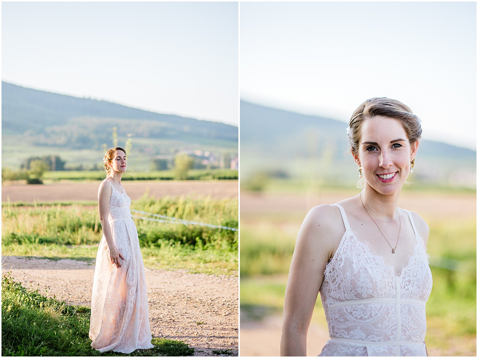 For this wedding at Achillée in Alsace France, I photographed the ceremony, early reception and portraits of all the guests. But before I left, I just had to photograph some bridal portraits of Keriann and Daniel when the evening light became its most flattering!
