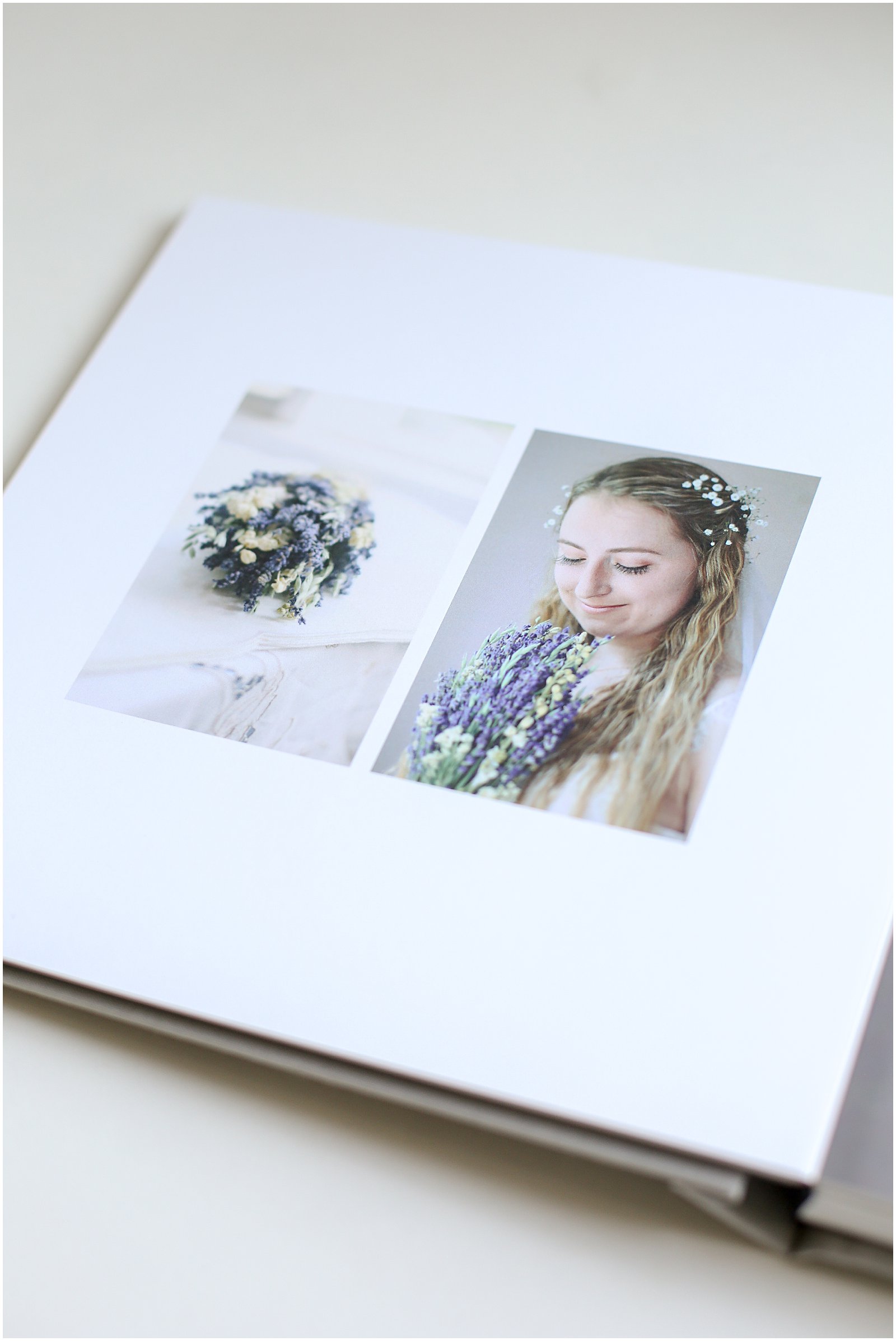 Our wedding photographs were printed on 10” X 10” ultrathick cardstock paper, with lay-flat binding and custom foil stamping marking our date on the binding.