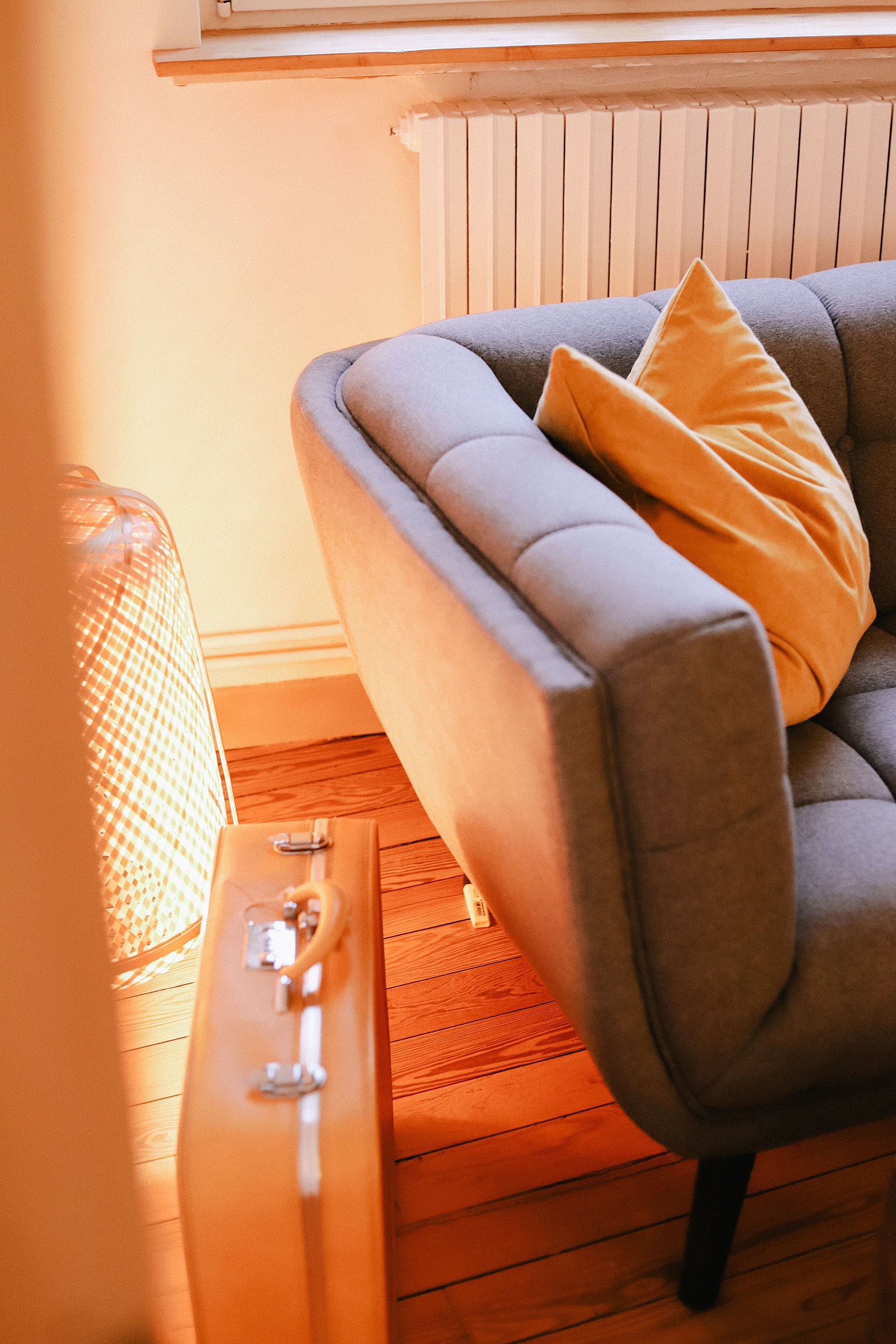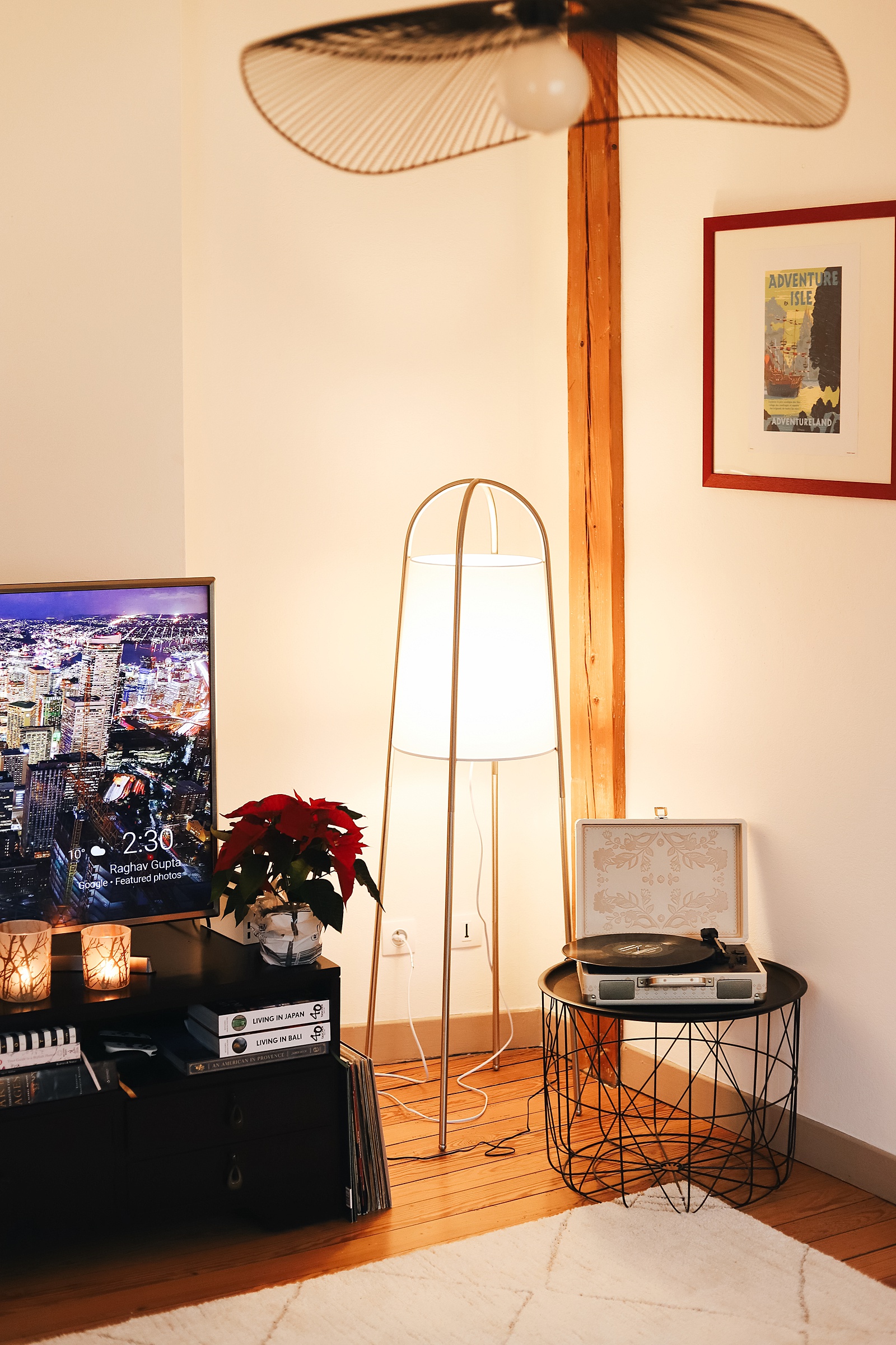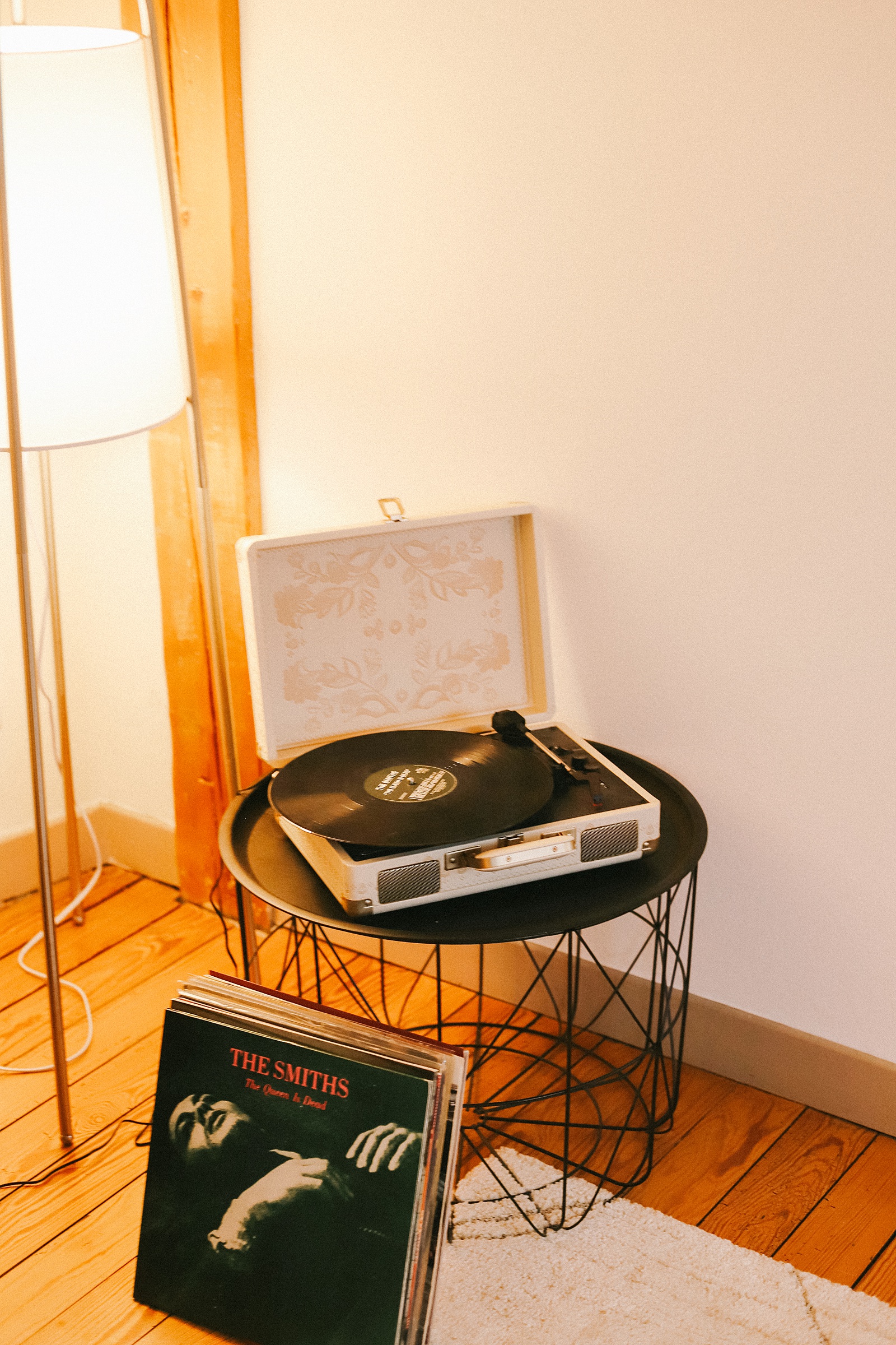 The living room is where the entertainment happens! Here Alex and I play card games like this one, watch movies and we love to play on the Nintendo Switch (it’s the easiest console to take with us as we travel and move around often). Often you can find us playing the Siberia games or Hogwarts Legacy! A record player placed in the corner, we play music often as I having been an avid collector of vinyls for years. This is also my favorite couch we’ve ever had, and it came with the apartment – fully furnished! We’ve also added several lamps to this room to keep the grey gloom at bay.
