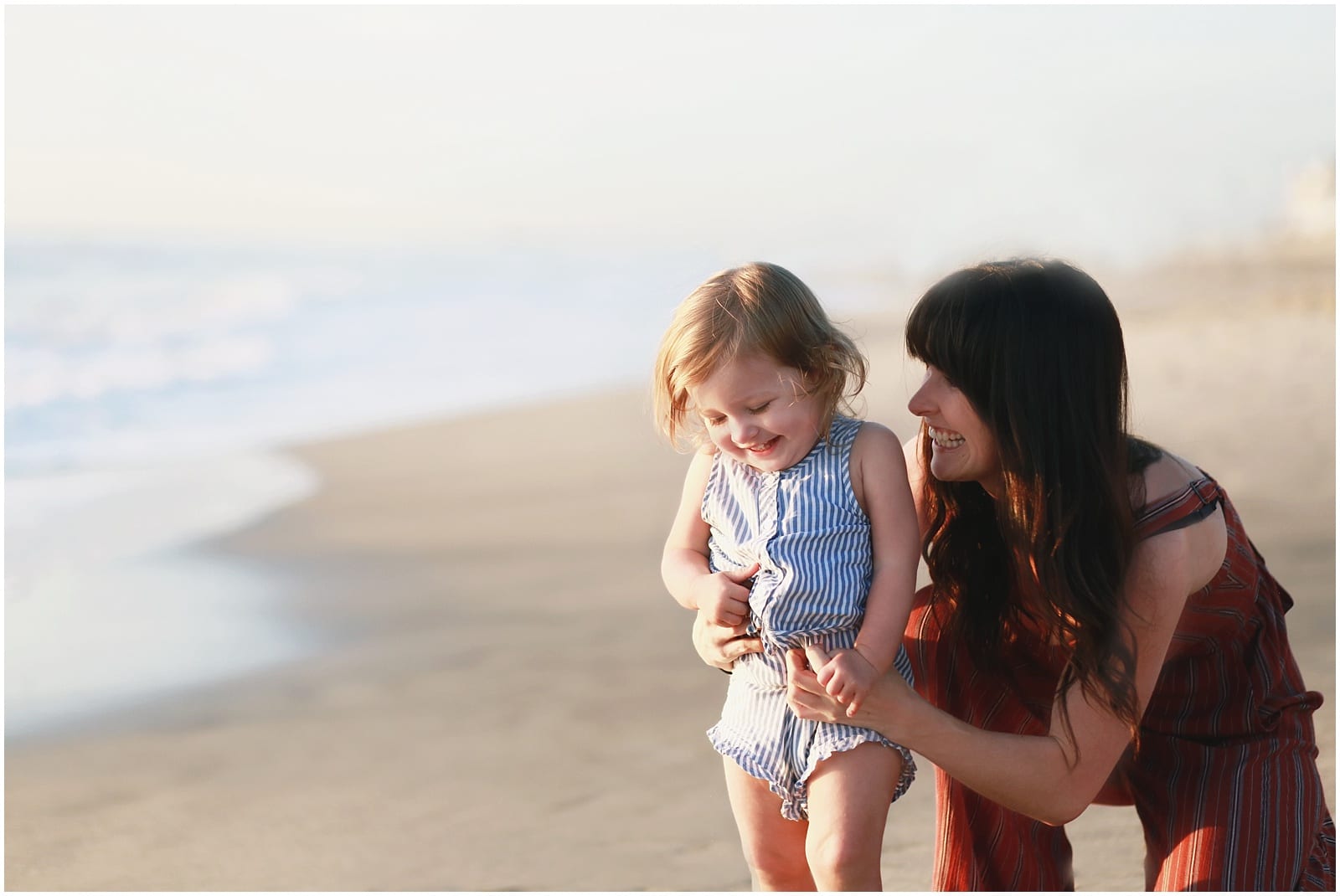 Children are their most natural, expressive and curious selves when a photographer isn’t right in their face. And with a long lens (like an 85mm or 135mm) and plenty of room to roam about and play, I am able to capture those more candid, real moments of childhood – which are my absolute favorite to photograph! Backing up and allowing my client’s room to be their natural selves with their children without me right in their face allows me to get those moments of true, unposed human connection. While I always do some light posing before pulling out my camera, I always like to leave a lot of space between me and my families to allow them to interact with one another. And beaches give me so much room and little distractions to do that.