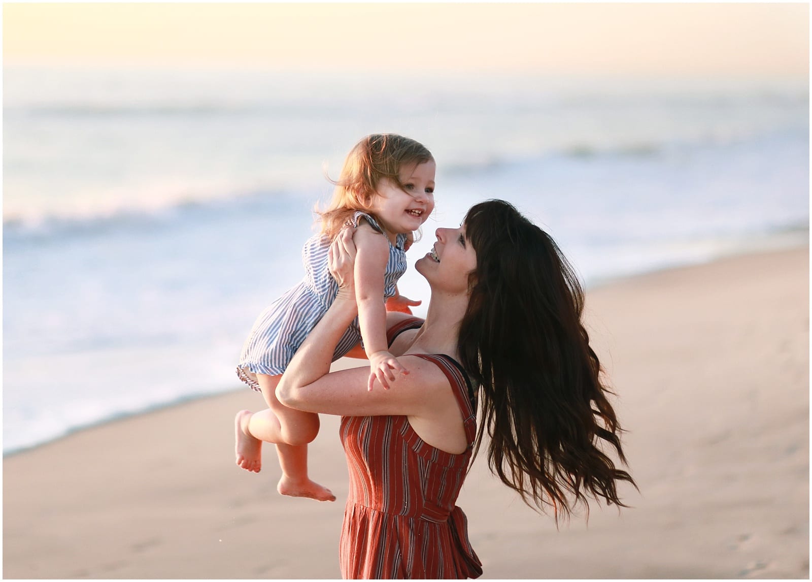 I just love a clean, polished background. Simplicity and a soft, minimalist look in what I aim for in my classic style of portraiture and the beach-scape gives me all of those minimalist vibes I’m after! No busy city backgrounds or textured tree branches to avoid, you can just have fun while I shoot! With a wide open sky, long stretches of sand, waves (and possibly sand dunes), the images come out super clean with plenty of negative space – allowing all the focus to go completely on my joyful subjects! Win-win! 🙂
