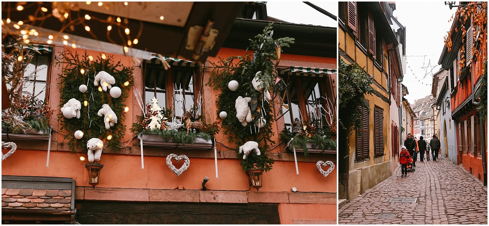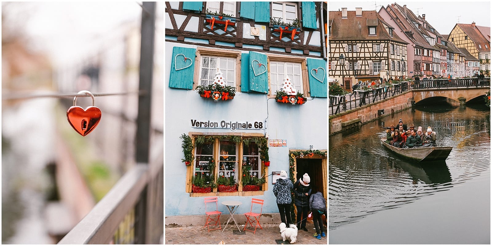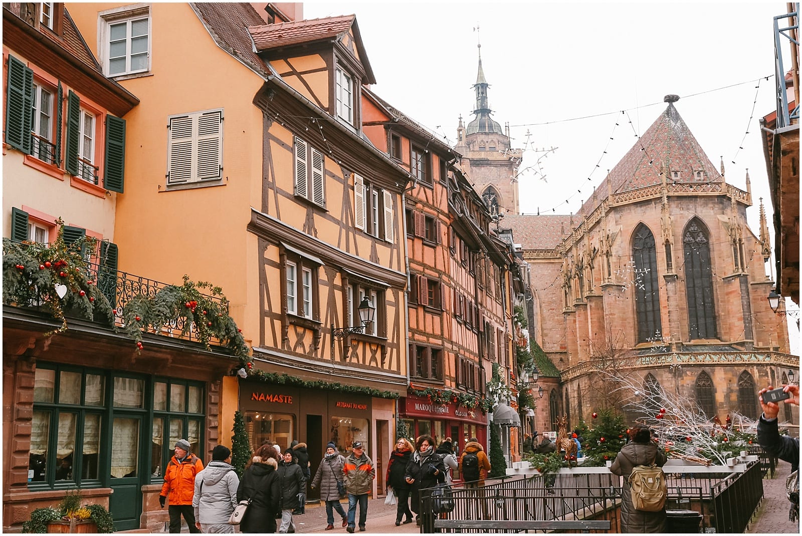 Colmar is an enchanting little town to wander in during the holidays, and even after being told by a baker in town that the Christmas market was closed the day after Christmas, we were delighted to see everything was still in full swing, tourists and families milling about the stalls and plenty of holiday cheer and music in the air. Alex and I still are pinching ourselves everyday that we get to live in France for our first two years of marriage. With Colmar just 30 minutes away from our home in Strasbourg, it made it a great holiday stop! If you’re in the Alsace region of France, be sure to visit Colmar and Strasbourg and let me know how you enjoy it! 🙂