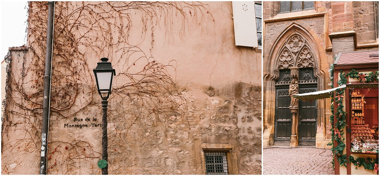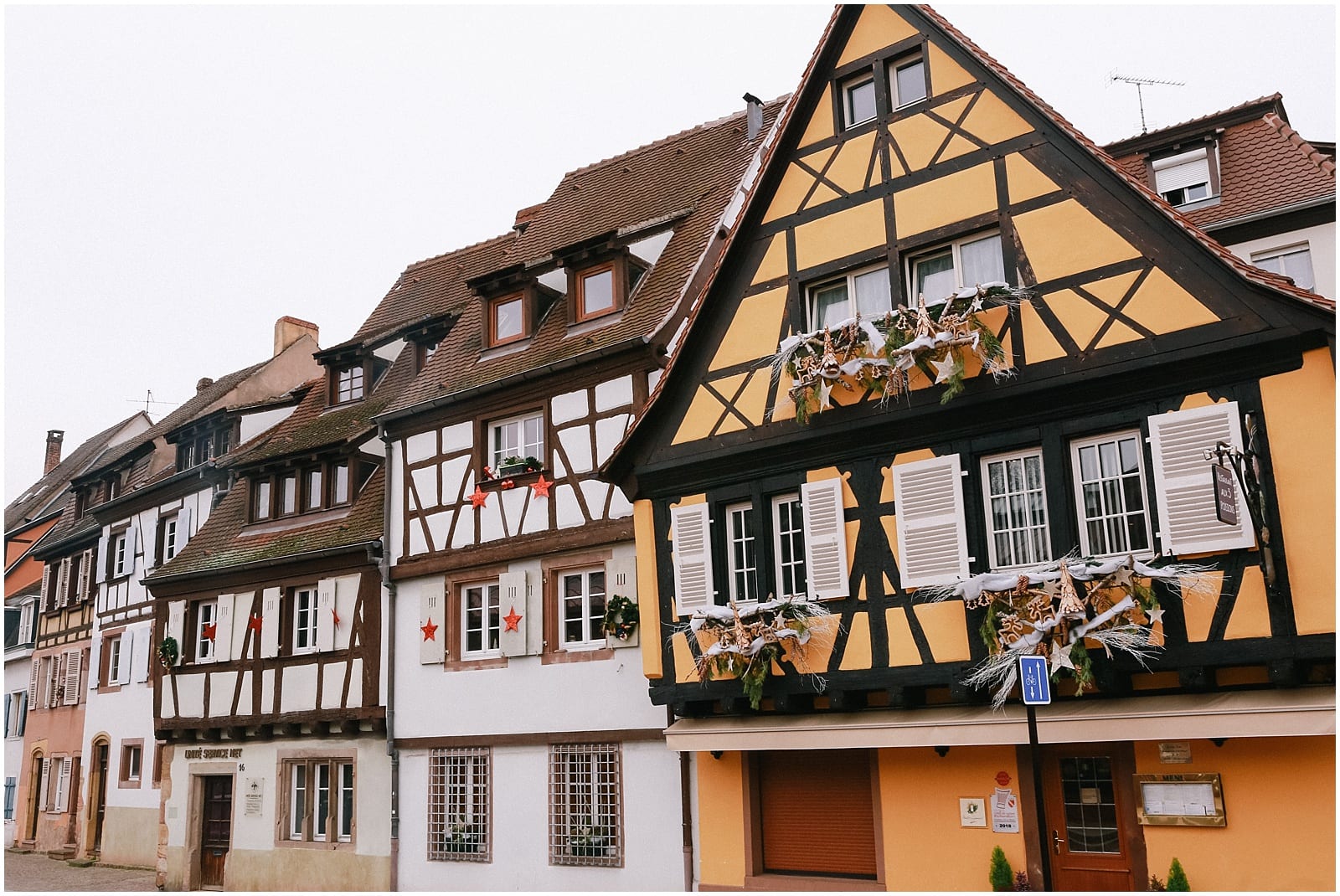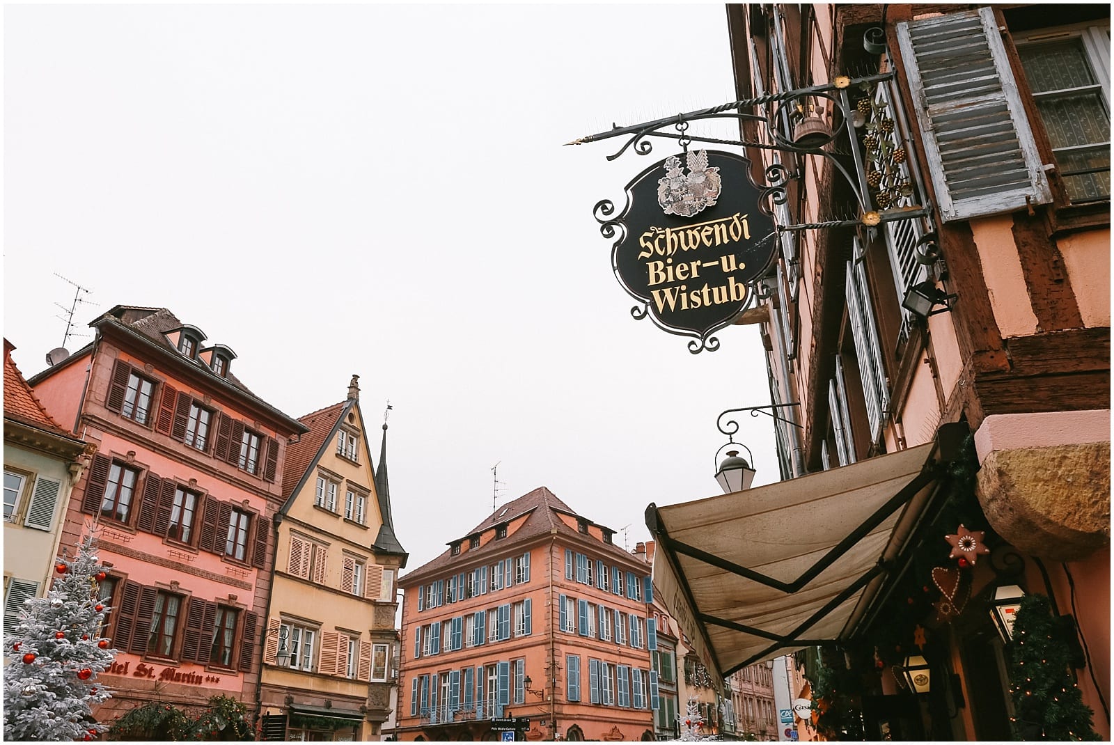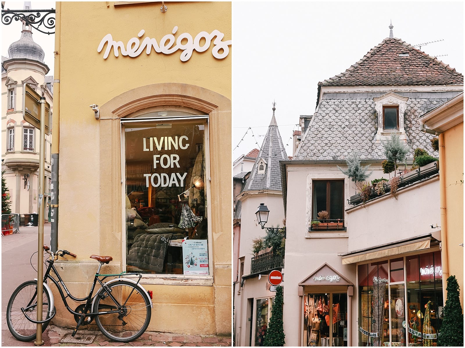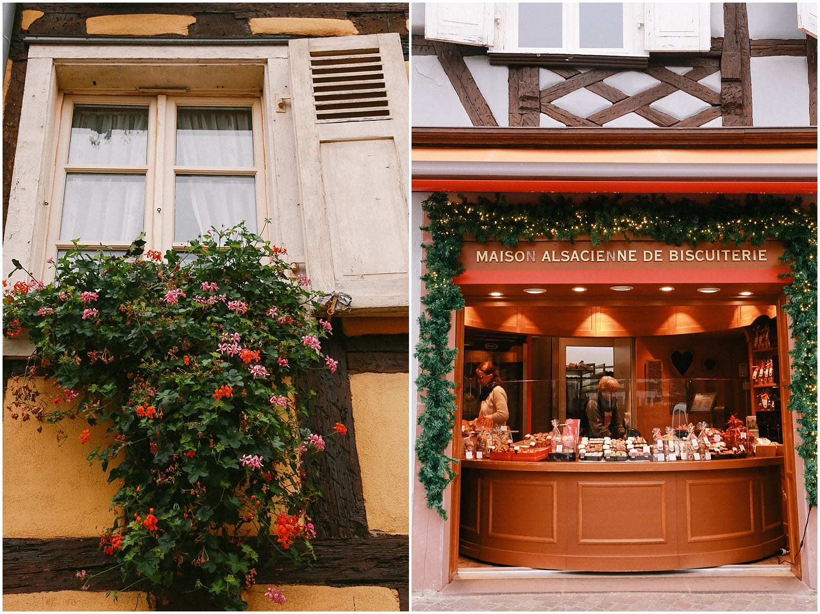 The houses in the old part of the town’s center are designed in traditional Alsacian style – with the wooden shutters, colorful pastel tones, old German type fonts, and German-influenced wooden carvings with shapes like hearts, clovers, and diamonds. Just like our recent visit to the little town of Fussen, it reminded us of the story of Snow White and the Seven Dwarfs. It had more of a Alsacian feel like traditional Bavaria, but it was still similar in the general feel of the small town.