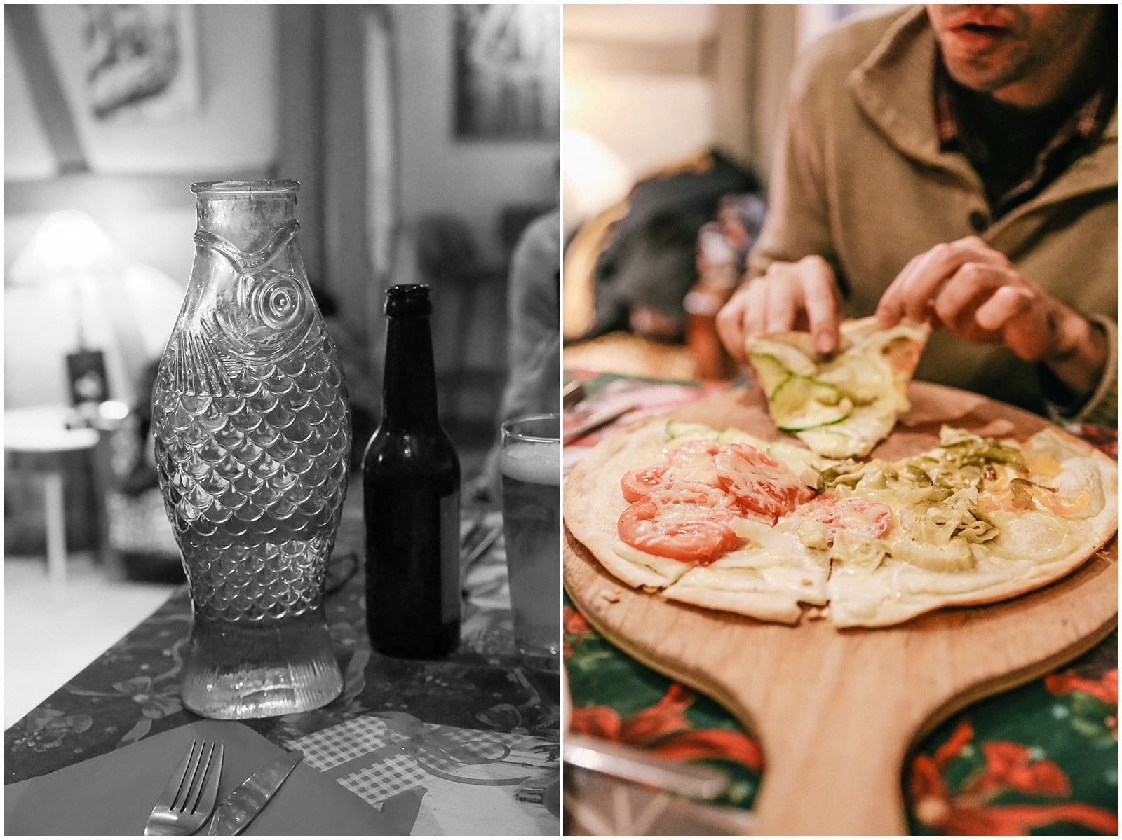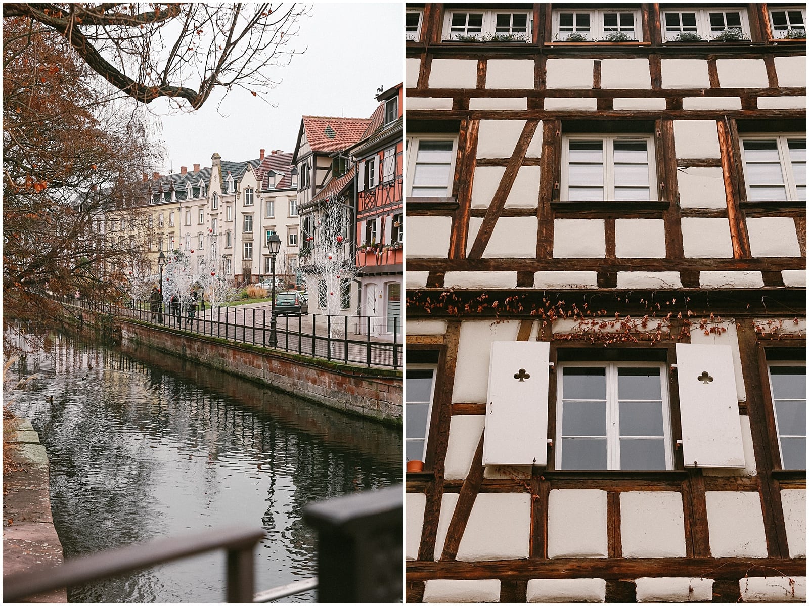 Alex and I took our time, wandering and gazing at the Christmas market stalls, getting lost in the cobblestoned side streets, and hopping in and out of chocolatier and patisserie shops to keep our toes from freezing. We split a traditional vegetarian Alsacian pizza called Tarte Flambee at a French cafe along the canals and enjoyed coffee and dark chocolate at an upstairs, cozy coffee shop, reading the new novels that we gifted one another on Christmas the day prior.