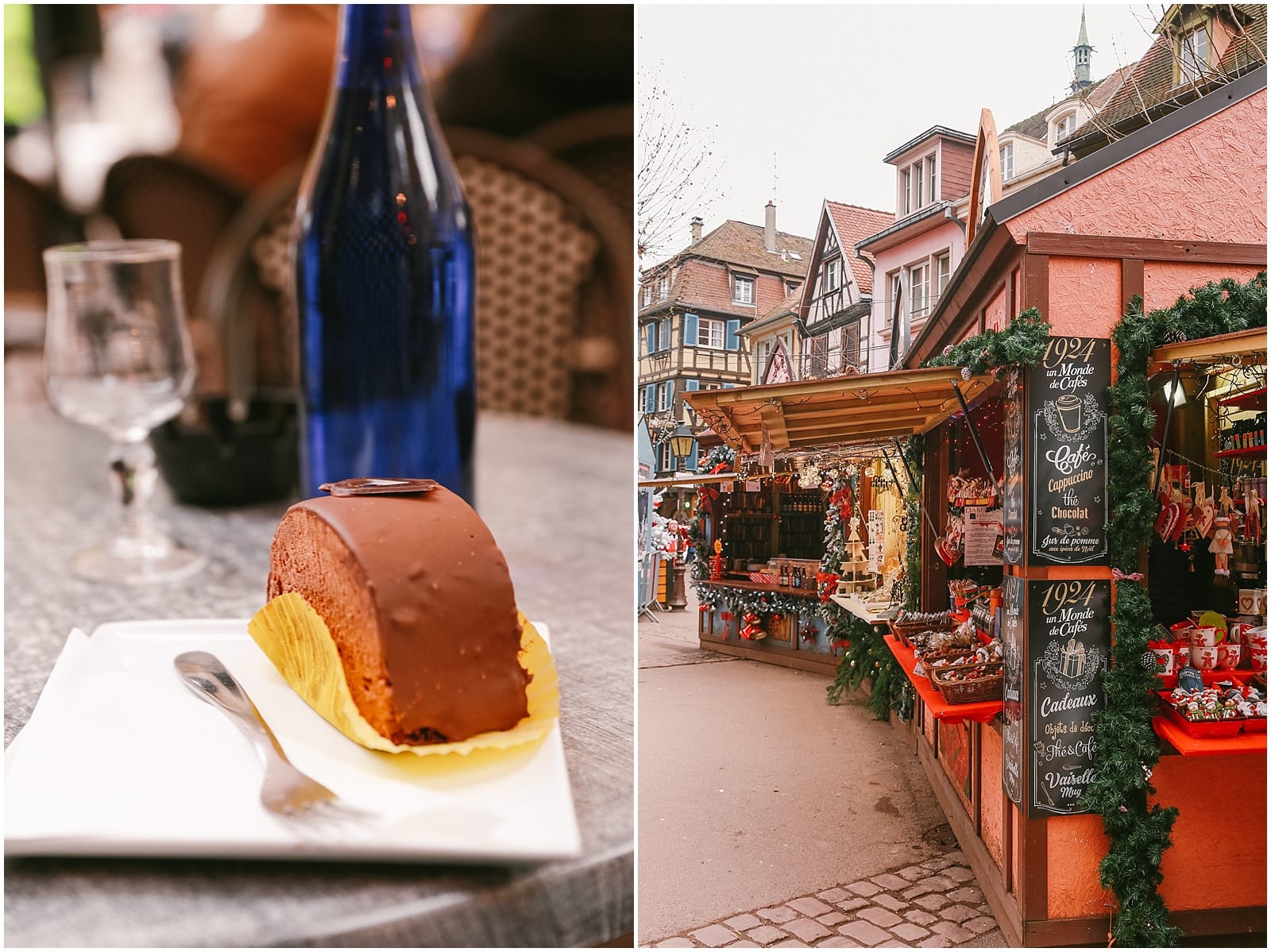 We spent roughly six hours in the small town of Colmar, as we took our time, slowly observing all the decor, Christmas stall displays and pastry shops. We devoured a single slice of Bouch de Noel chocolate “Venezuela” mousse cake overlooking the Cathedral, and Alex pointed out a traditional French pie in a patisserie called Galette-au–roi . An almond pie often eaten in the winter months, this flakey dessert contains a hidden porcelain figurine inside the pie! Each person gets a slice and when eating, one must eat it very slowly so as not to choke on the figure! Whoever finds the figurine wins the golden crown – a shiny, paper crown that comes with the dessert. How neat is that? When Alex explained this to me, after having it all the time as a kid (he grew up in France), I fell in love with this unique treat.