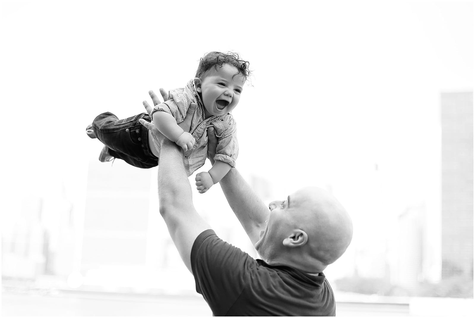 My heart soars when I see dad throw his little one high up in the air and they all smile, looking up at their laughing, joyful baby. I love photographing family portraits where dad holds up his child in that classic Lion King pose and the family interacts with with another as they naturally would.