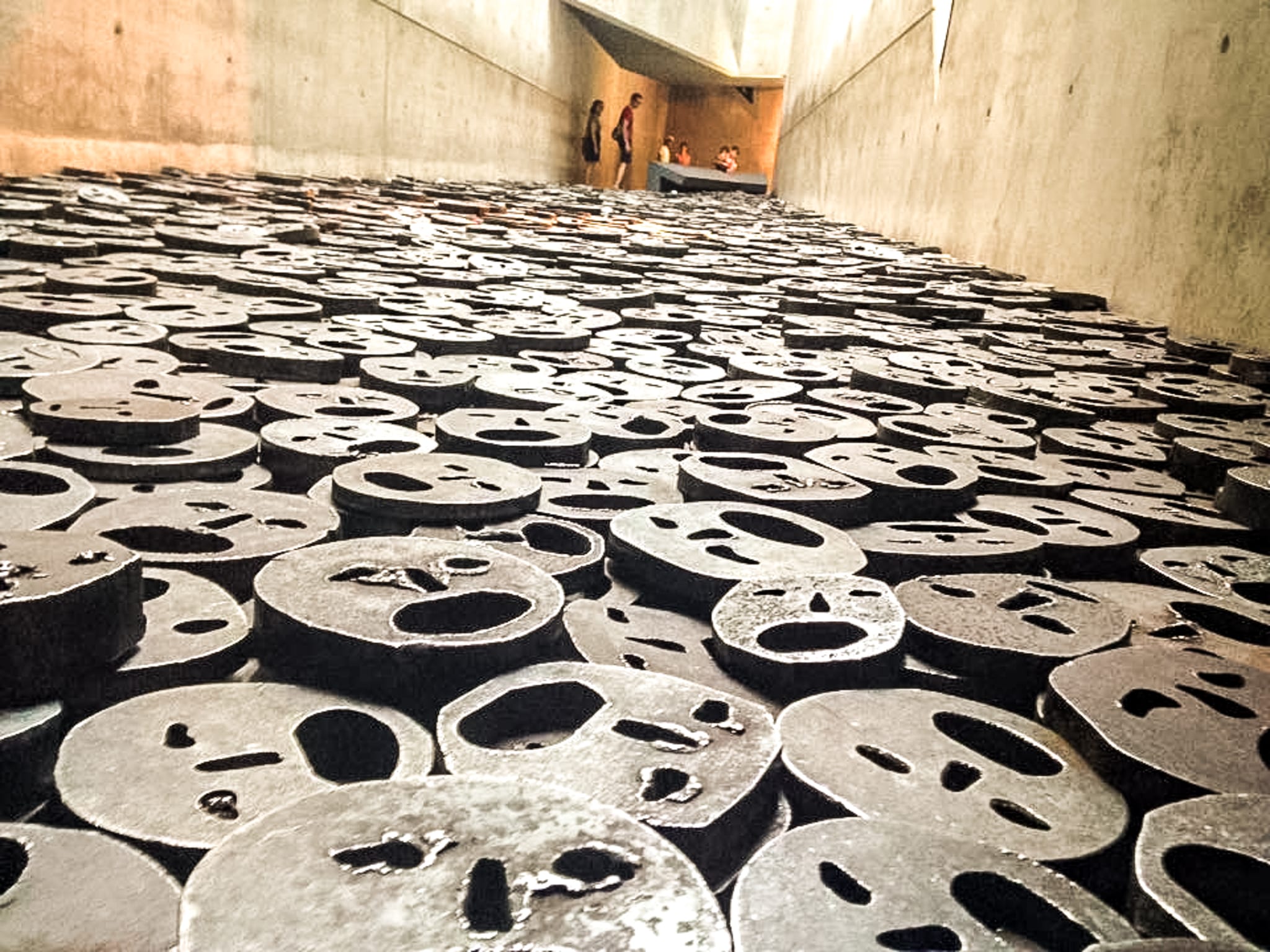 My friend from Spain was an aspiring photographer, and he had a great passion for design and art. He pointed out to me the famous exhibit Two Millennia of German Jewish History , which allowed us to see the Germany of the past and present through the eyes of the Jewish minority, along with Shalekhet (Fallen Leaves) in the Memory Void, one of the empty spaces of the Libeskind Building. Over 10,000 open-mouthed faces coarsely cut from heavy, circular iron plates cover the floor. As we stepped on the loud plates and moved over the faces, we commented on how emotional the artwork made us feel. So much history has been cemented in Berlin since World War Two, and spending those three days in such a tragic city was very educating for me.