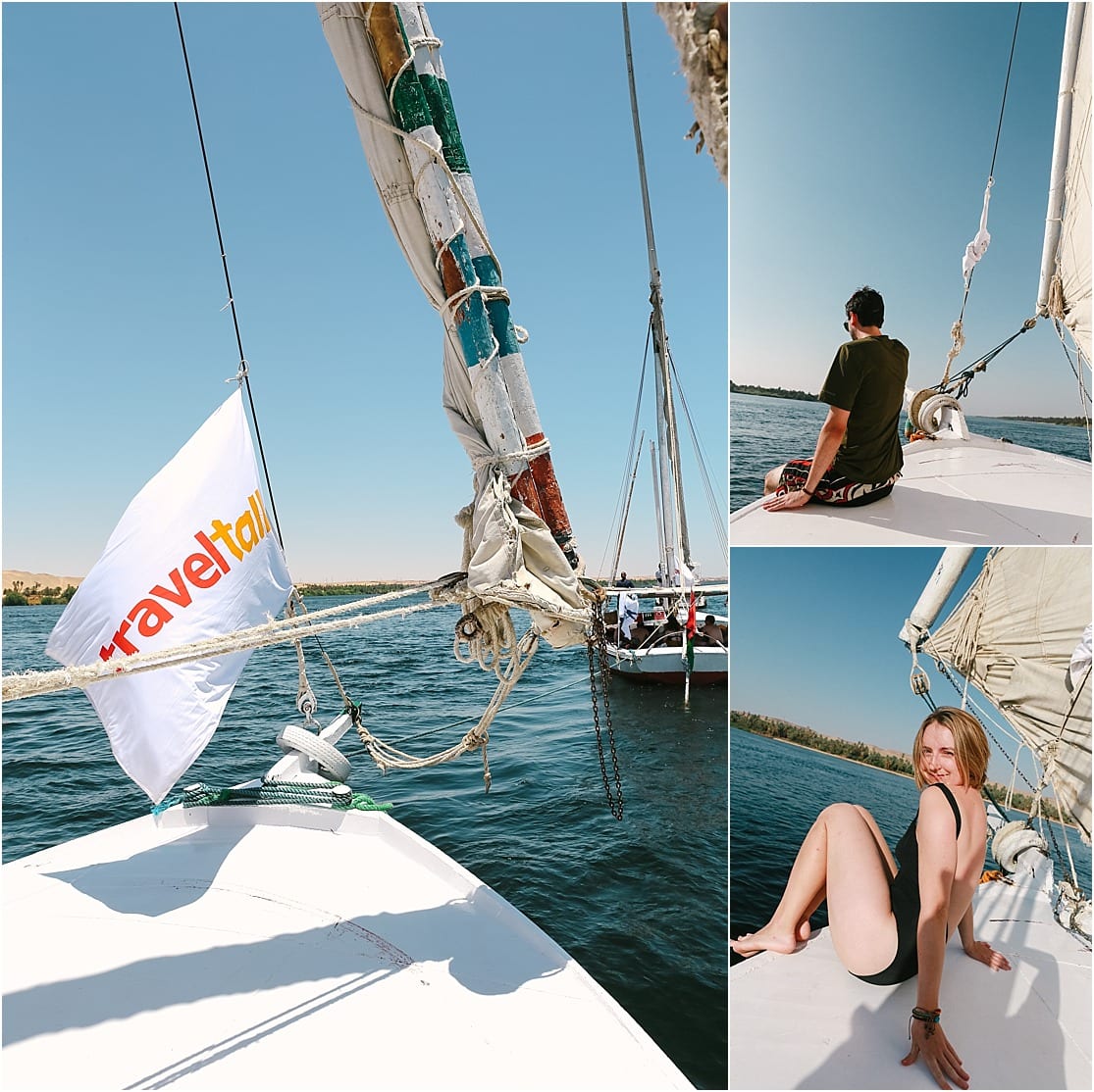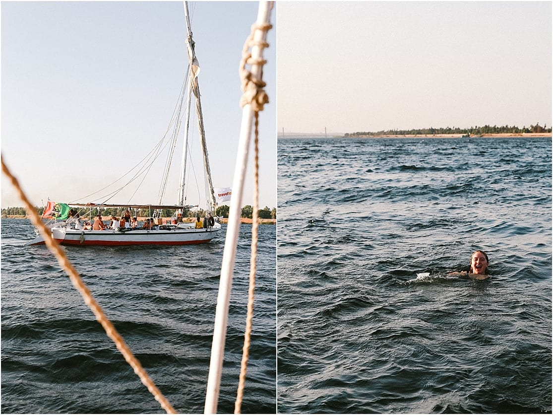 Alex and I didn’t ask enough questions before we booked the Felucca, and while the tour did not advertise itself to be a party tour per se, we should have asked beforehand. Later on, we asked our guide if this happens often and he confirmed that this tour attracts a lot of Aussies looking to party on the felucca after the long tour days. Looking back, Alex and I would not have taken Travel Talk Tour’s overnight felucca boat but rather the optional 3 day boat cruise that another girl on our tour went on. That would allow us to experience the land tour with Travel Talk as well as sailing aboard a Felucca for an afternoon as opposed to 2 nights living on it. Alex and I learned that we like simple pleasures like a good night’s sleep and choosing which foods we’d like to eat. We like having the option to leave the boat after a full day if we so choose or having some individual solo time when loud crowds of people are becoming too much for our quieter selves. For introverts that need space and alone time to recharge their batteries, and don’t align with the loud partying atmosphere, I can assure you that you will be in utter misery. Especially if you like 4+ hours of sleep per night. While I loved the moments of sailing and swimming in the refreshing waters of the Nile, we could have easily booked an afternoon trip.
