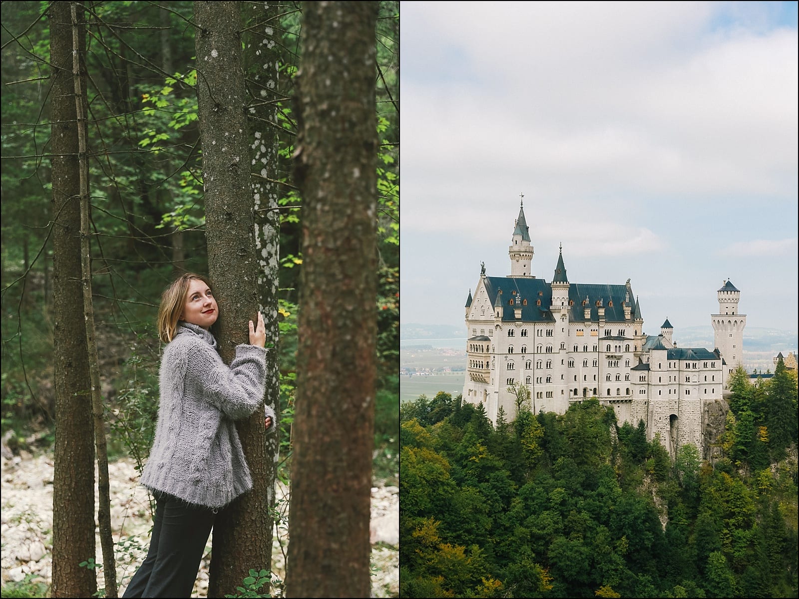 Upon waving off to our new friend, Alex and I went off in search of the Tegelberg cable car. After a 40 minute hike, we were told it was a 3-4 hour hike up one way, which would make us miss time to actually see the castle from the famous bridge lookout point. Inside of hiking all the way up to Tegelberg, we followed the dirt path up the mountain for as long as we could, spotting the most tranquil waterfalls spilling out from the forest. We sat on some rocks alongside the waterfall and ate our lunch of croissants and cheese – plenty of red lipstick marks on my croissant included. 🙂