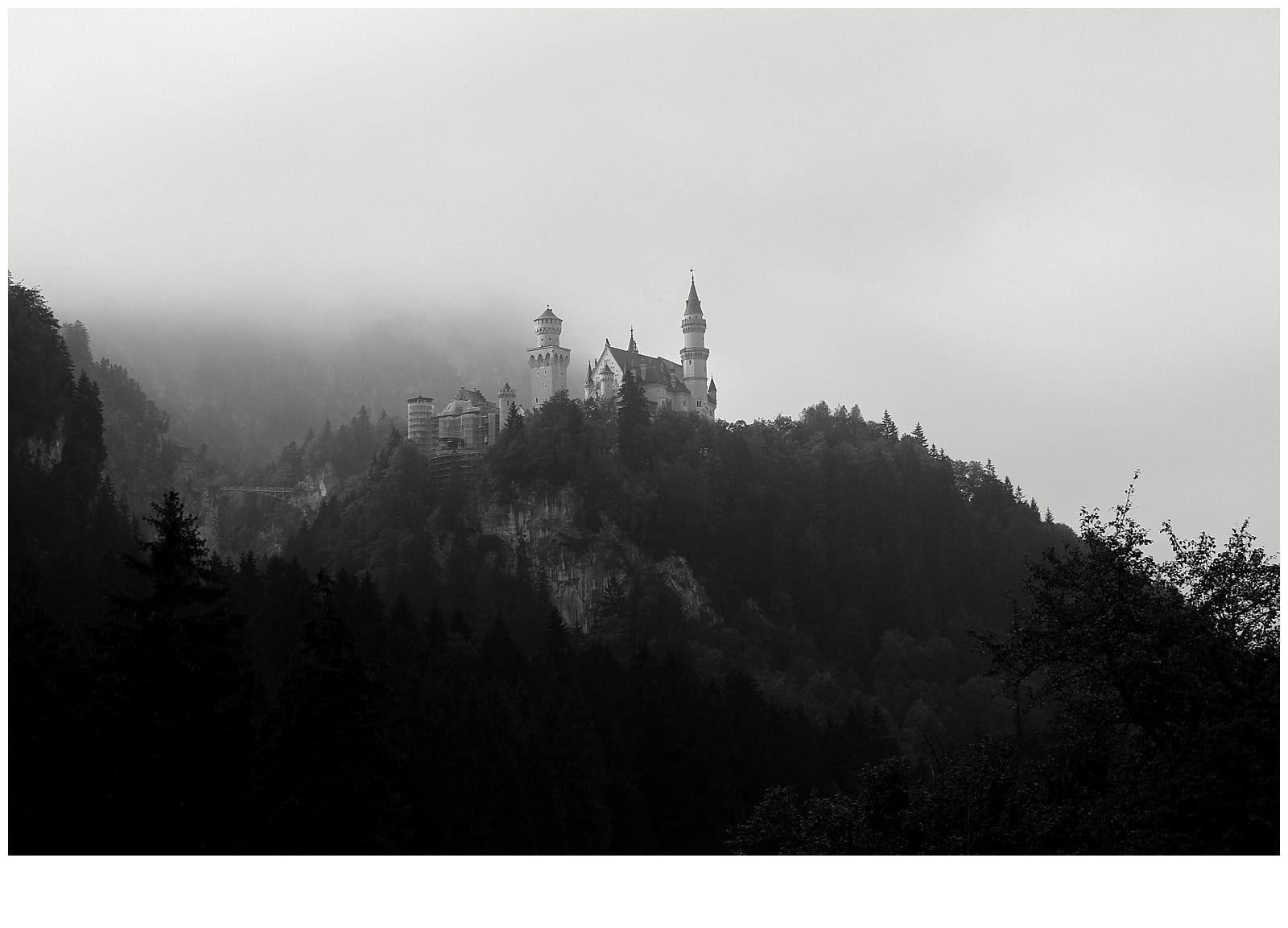 Of course, Alex and I ended up missing our alarm and sleeping in, making us miss our morning time to see the castle. We were hoping to skip the tourists and crowds and go bright and early around 7:30, but I’m so glad we didn’t! A dark, thick fog engulfed the castle that morning, and luckily it cleared up by the afternoon, making it easier to spot the castle.