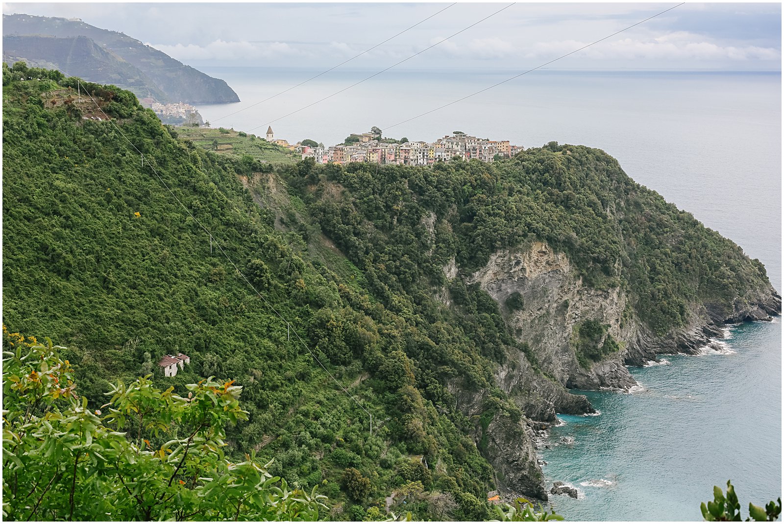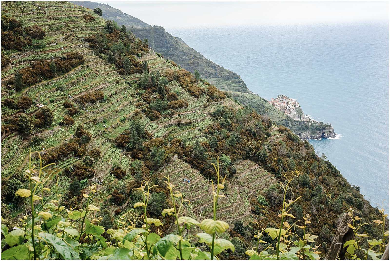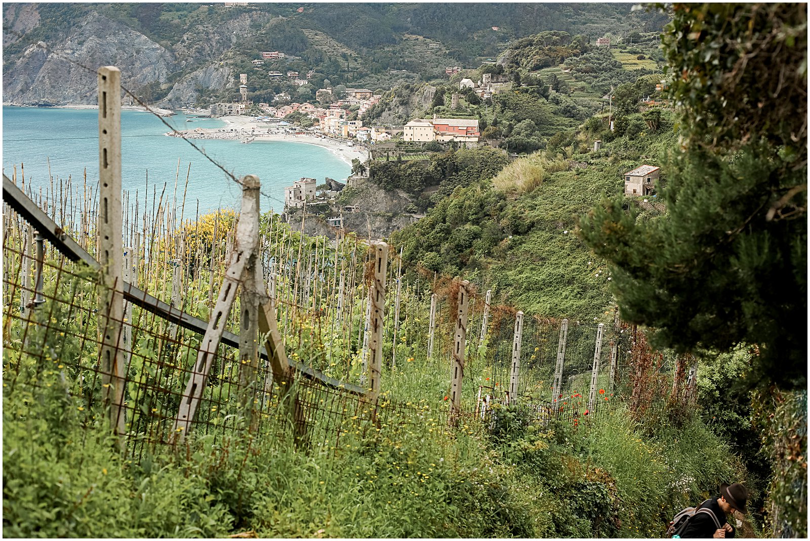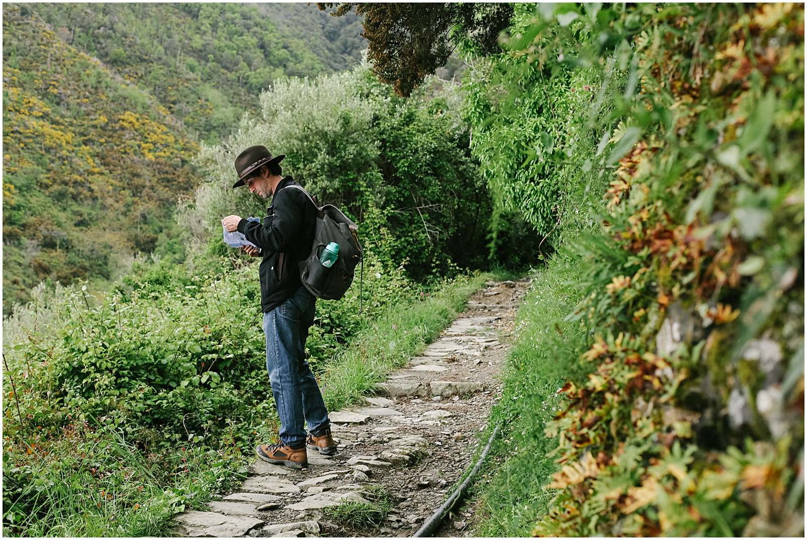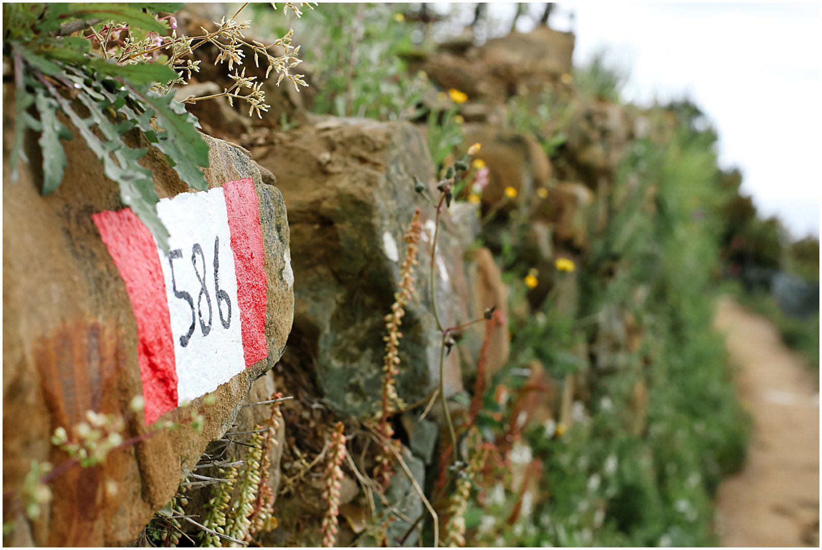The red trail was our favorite trail, as it was far more challenging than the cliff-side blue trail that hugs the sea below. The red trail took us up deep into the lush mountains, with its spattering of yellow wildflowers and green mossy leaves along the far off mountains. The dirt-path climb was steep and challenging, and we encountered the most awe-inspiring views of the vineyards leading down to the village of Manarola. The trail from Corniglia to Manarola was long, taking 4 hours to hike up, through and around the forest.