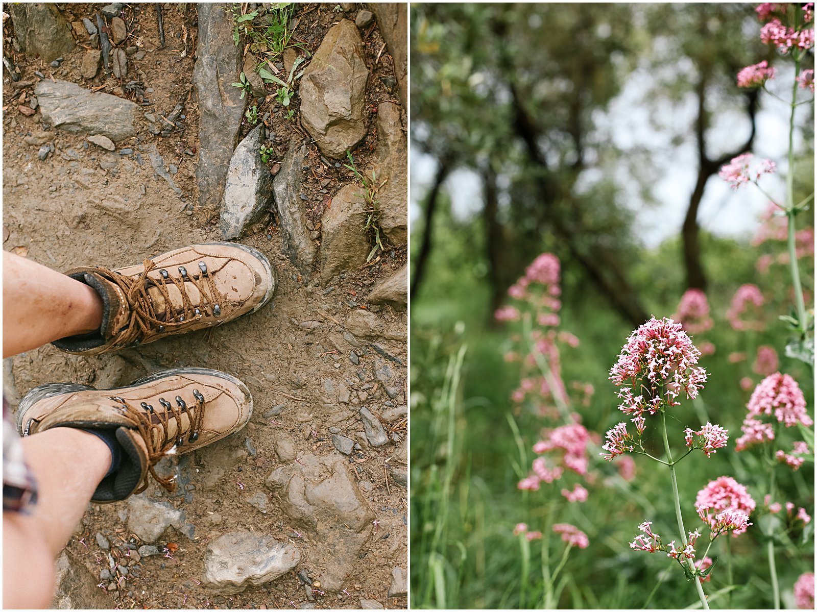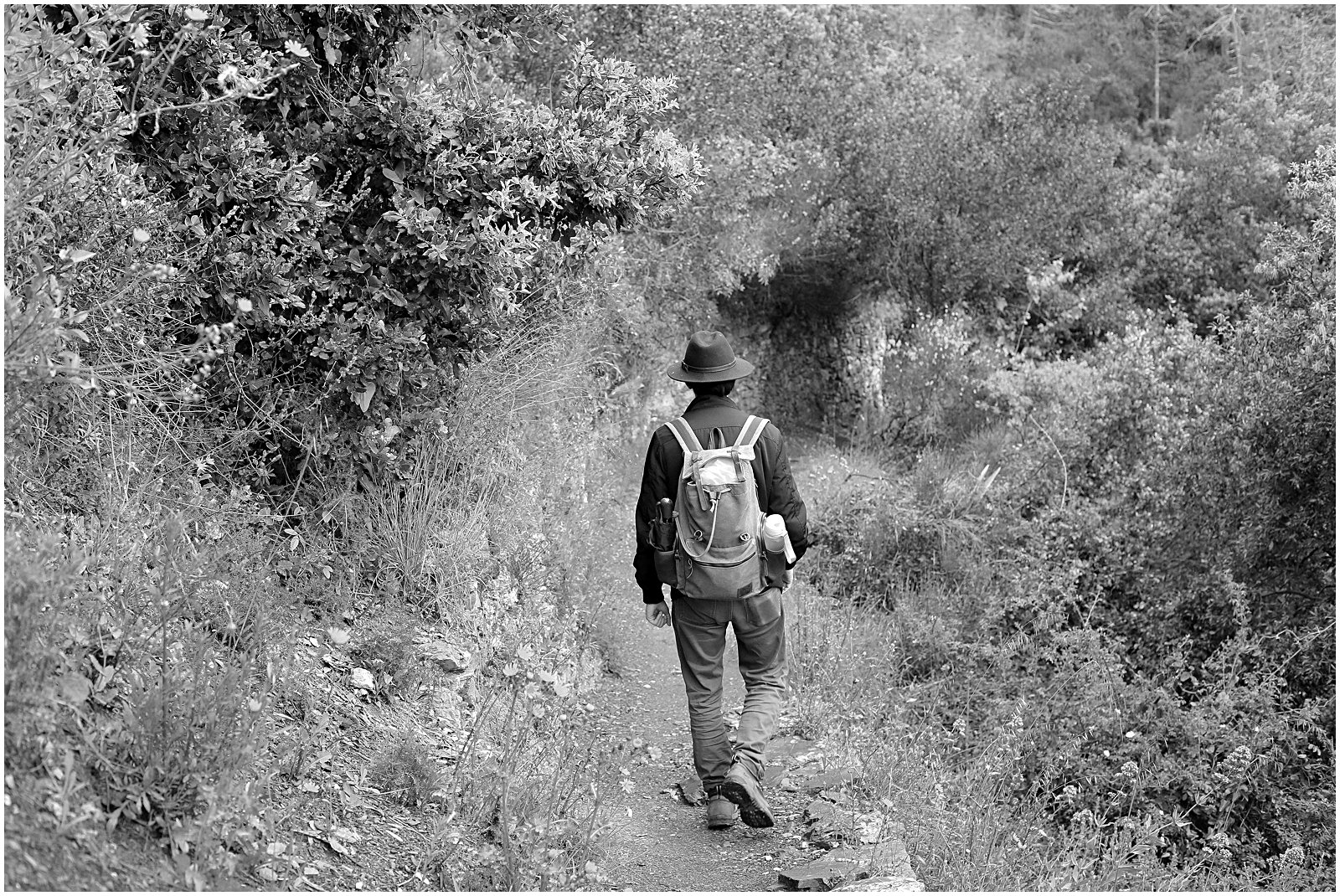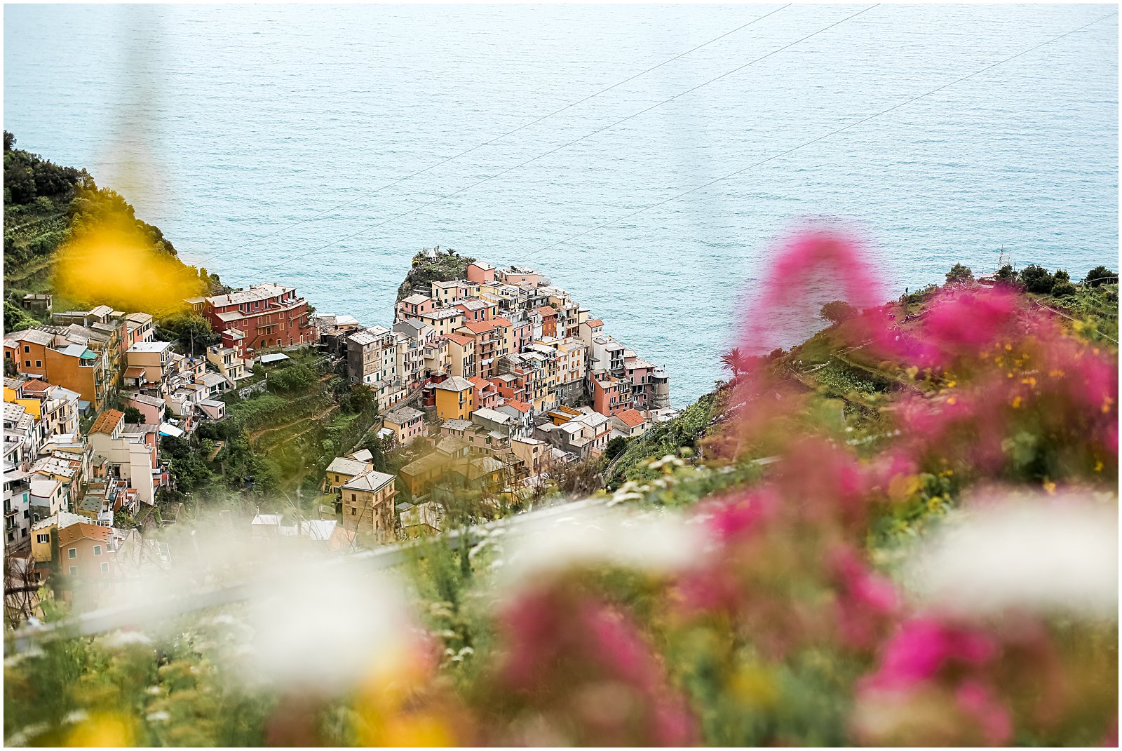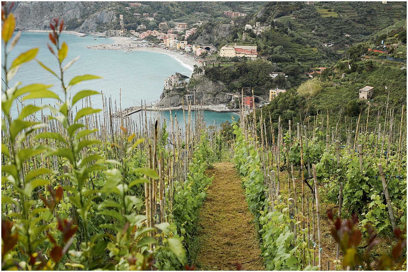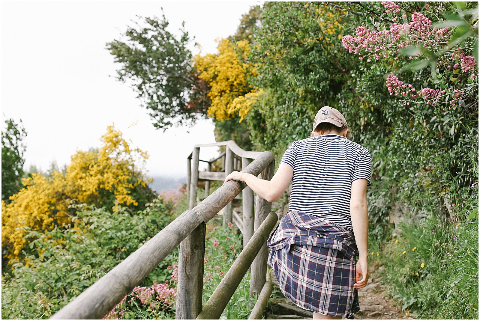The red trail was our favorite trail, as it was far more challenging than the cliff-side blue trail that hugs the sea below. The red trail took us up deep into the lush mountains, with its spattering of yellow wildflowers and green mossy leaves along the far off mountains. The dirt-path climb was steep and challenging, and we encountered the most awe-inspiring views of the vineyards leading down to the village of Manarola. The trail from Corniglia to Manarola was long, taking 4 hours to hike up, through and around the forest.