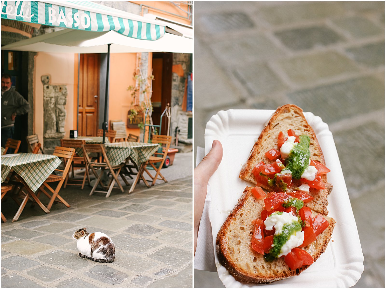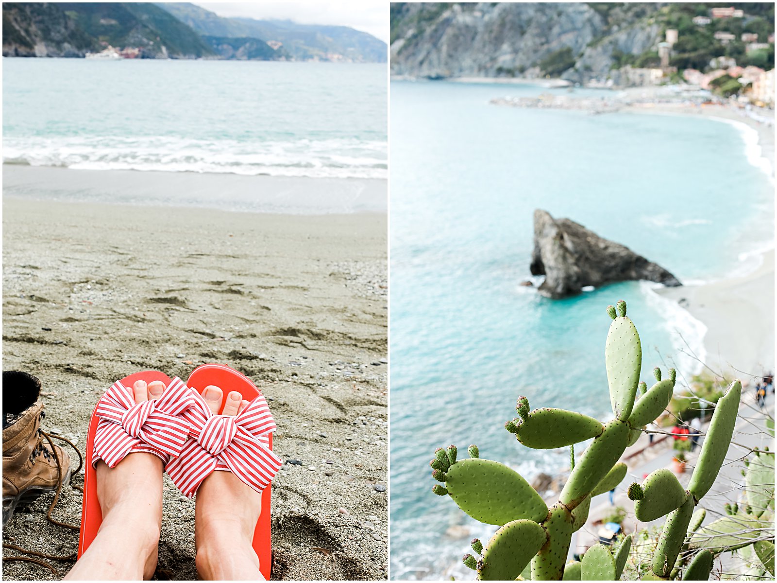 Aside from the red trails, the most beautiful hike on the blue trail is from Vernazza to Monterosso. With its trickling waterfalls, stray cat houses, stone bridges and infinite rows of leafy vineyards, we joined the crowded trail with the other hikers (this path was open!) and snapped a few polaroids on our climb down the side of the cliff. At last, after 4 hours, we arrived at the beach of Monterosso, where we enjoyed some left-over pesto pizza and relaxed on the beach.