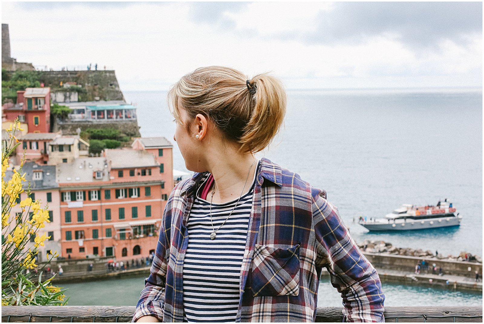 Upon finding construction signs warning us not to enter, we realized why the rope was drawn up at the entrance to the trail. Work was being down on the mountain, as it looked as if there was a mini-landslide that destroyed the footpath. We carefully climbed and maneuvered over the small, rickety ladder and we helped each other up. After a few minutes climb, we were on the other side, now deciding to come up with some excuses as to why we were on the trail if we got caught. Luckily, there were no construction workers on the site that Sunday. We continued our hike to find the small pastel-colored village of Vernazza far off in the distance, and we quickly trekked our way down past the small castle ruin and a little domed church to find the curved harbor with bobbing boats – and plenty of hikers gazing up at us from the entrance wondering why we were up there.