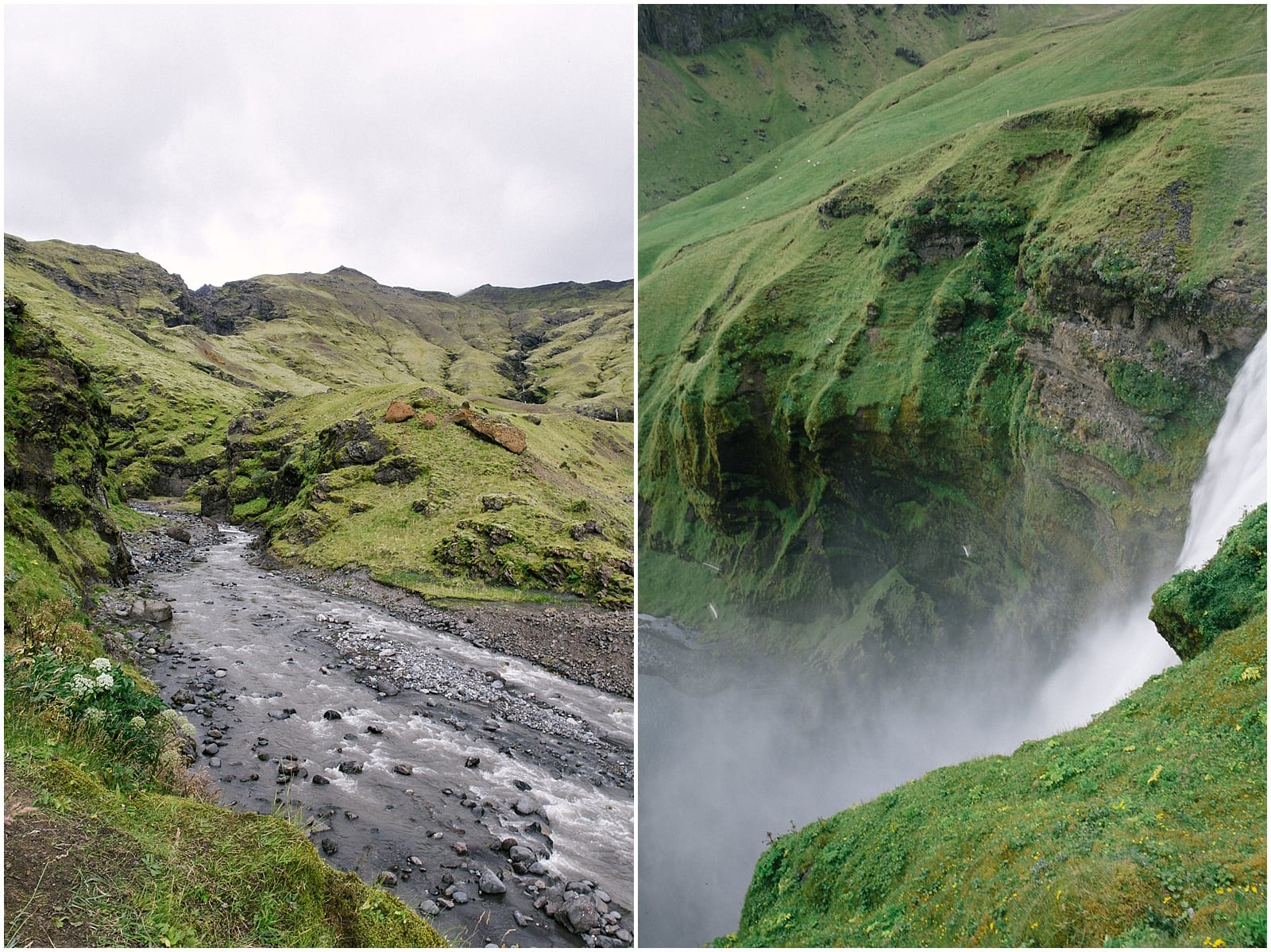 What’s great about camping at this relatively cheap camp site ($12) was its easy access to hiking trails and waterfalls on site. We climbed a few mountains and walked to Seljalandsfoss with the rest of the tourists and photographers and hiked underneath the mossy-green cave with it’s icy, cold water flowing into the river. Despite the crowds, it is such a sight to see. After cooking breakfast in the campsite’s kitchen, we continued on down south, stopping at nearby natural wonders I found in my Pocket Lonely Planet. I navigated, and Alex drove. This was our routine.