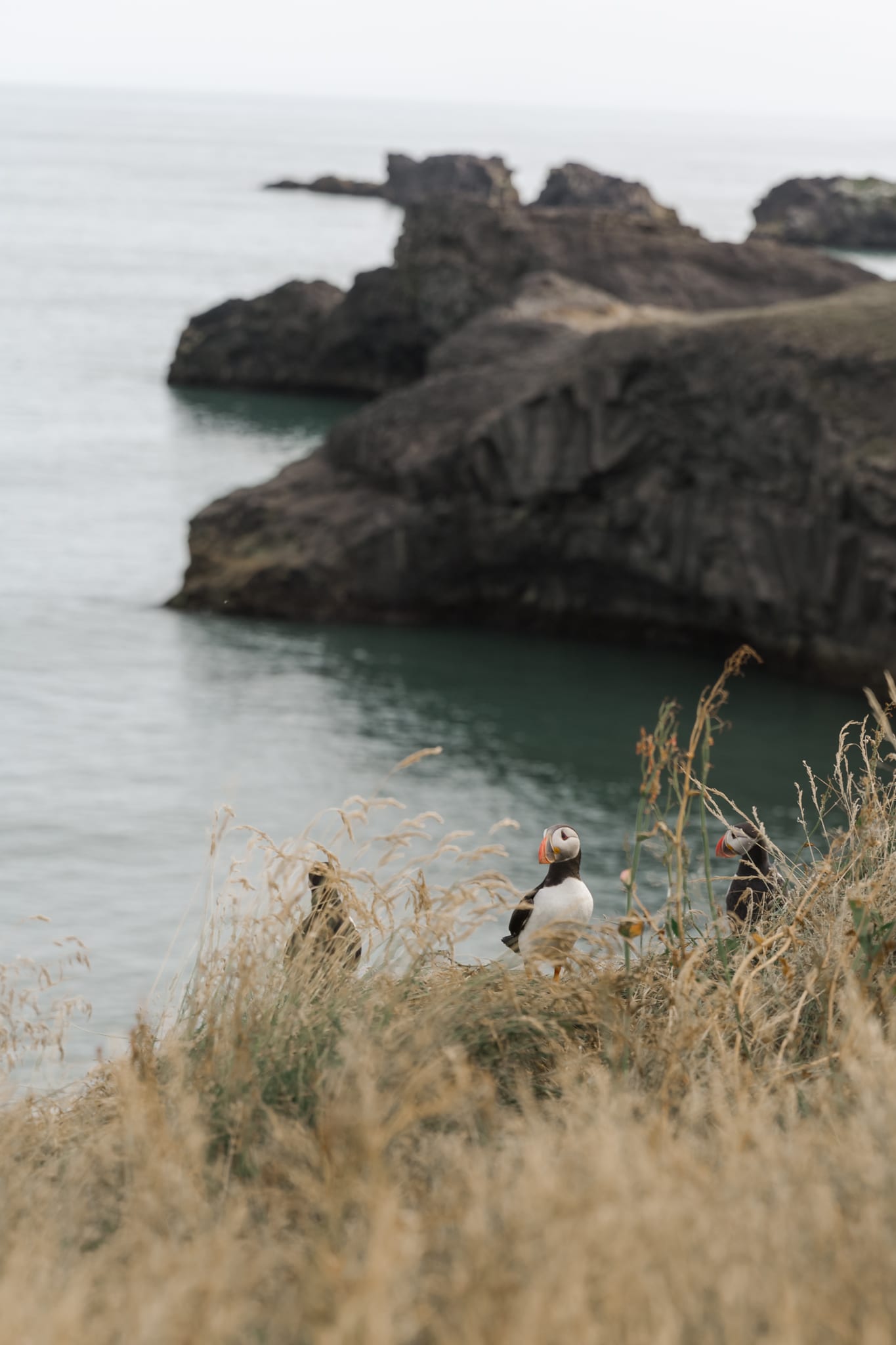 Before we arrived in Vik, we stopped at 2 black sand beaches: Reynisfjara, with its cluster of sea stacks and climbable stone pillars and breathtaking Dyrholaey, with its rocky plateaus and huge stone sea arch. We observed puffins and the tall golden grasses along the rocky sea cliffs, snapping a few pictures and having some good quality talks overlooking the waters. Growing up in San Diego, I am very used to beautiful sea cliffs and beaches, but Iceland still managed to stun me with its natural beauty.