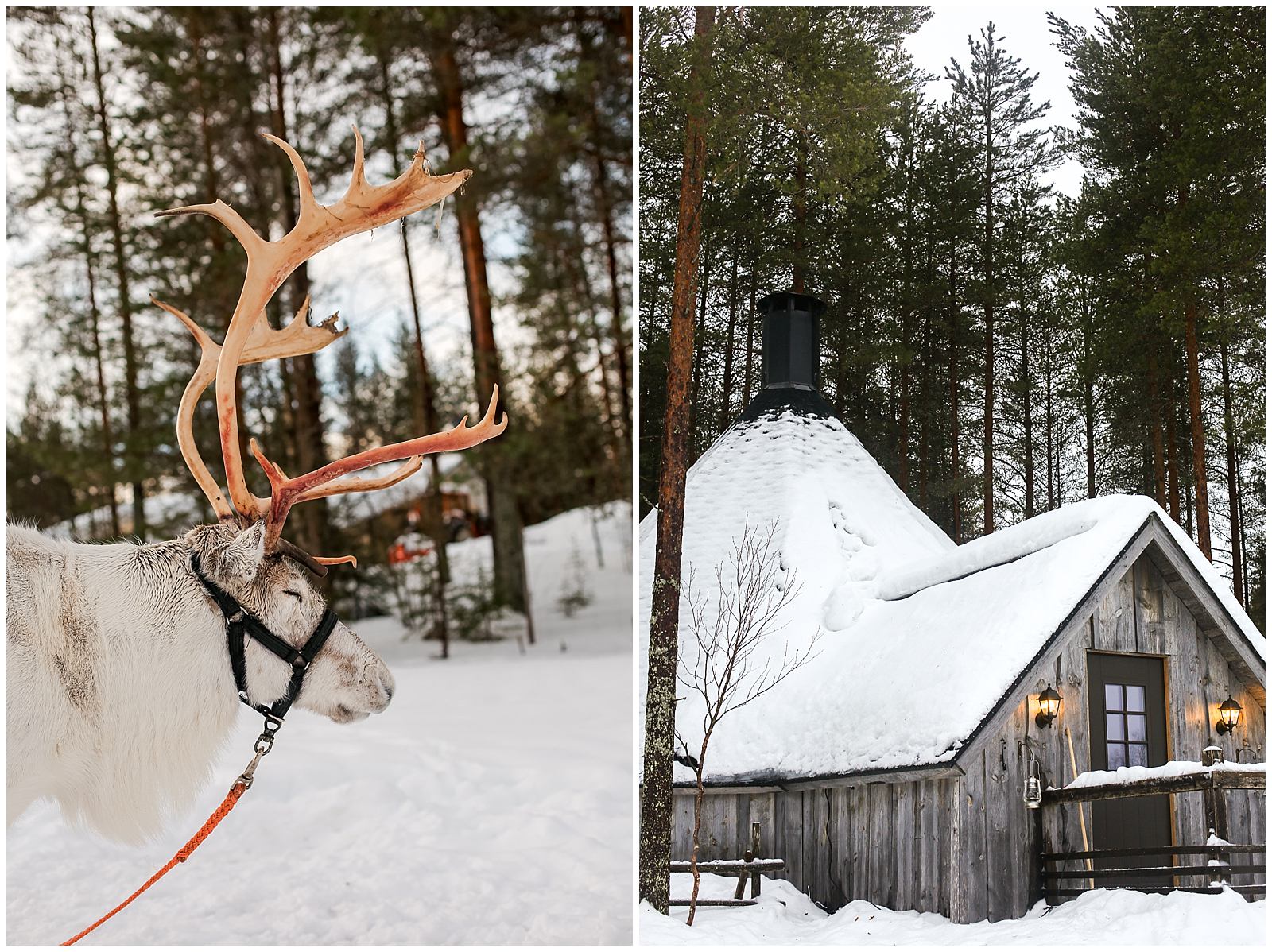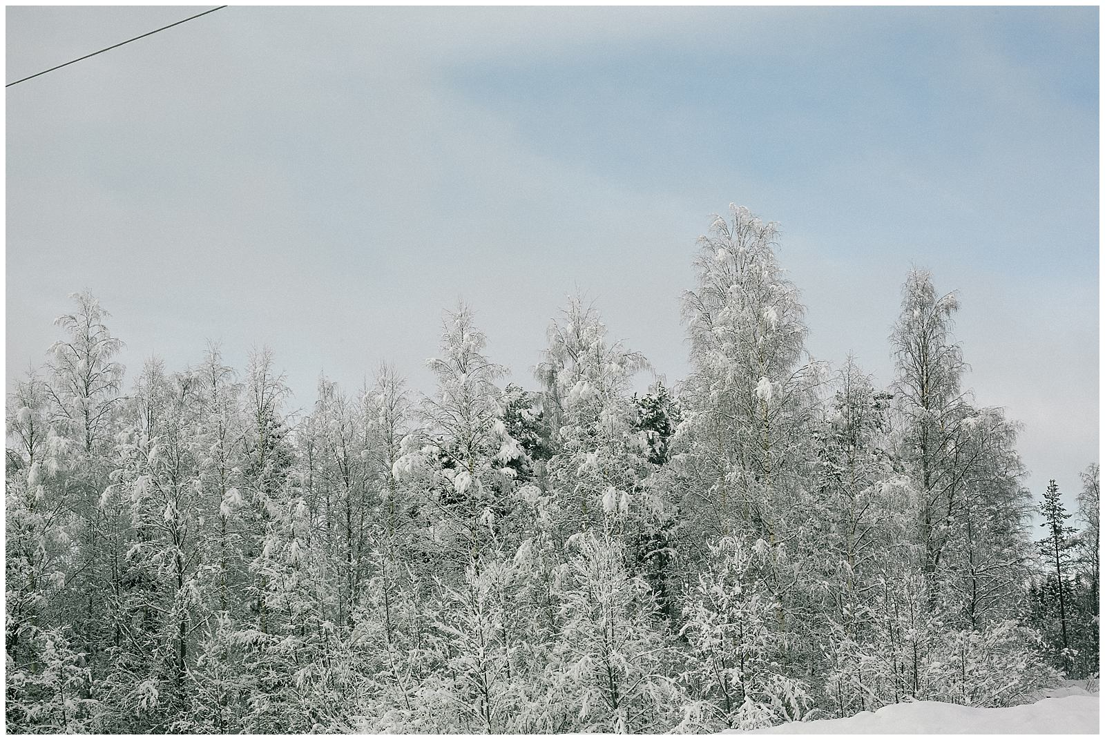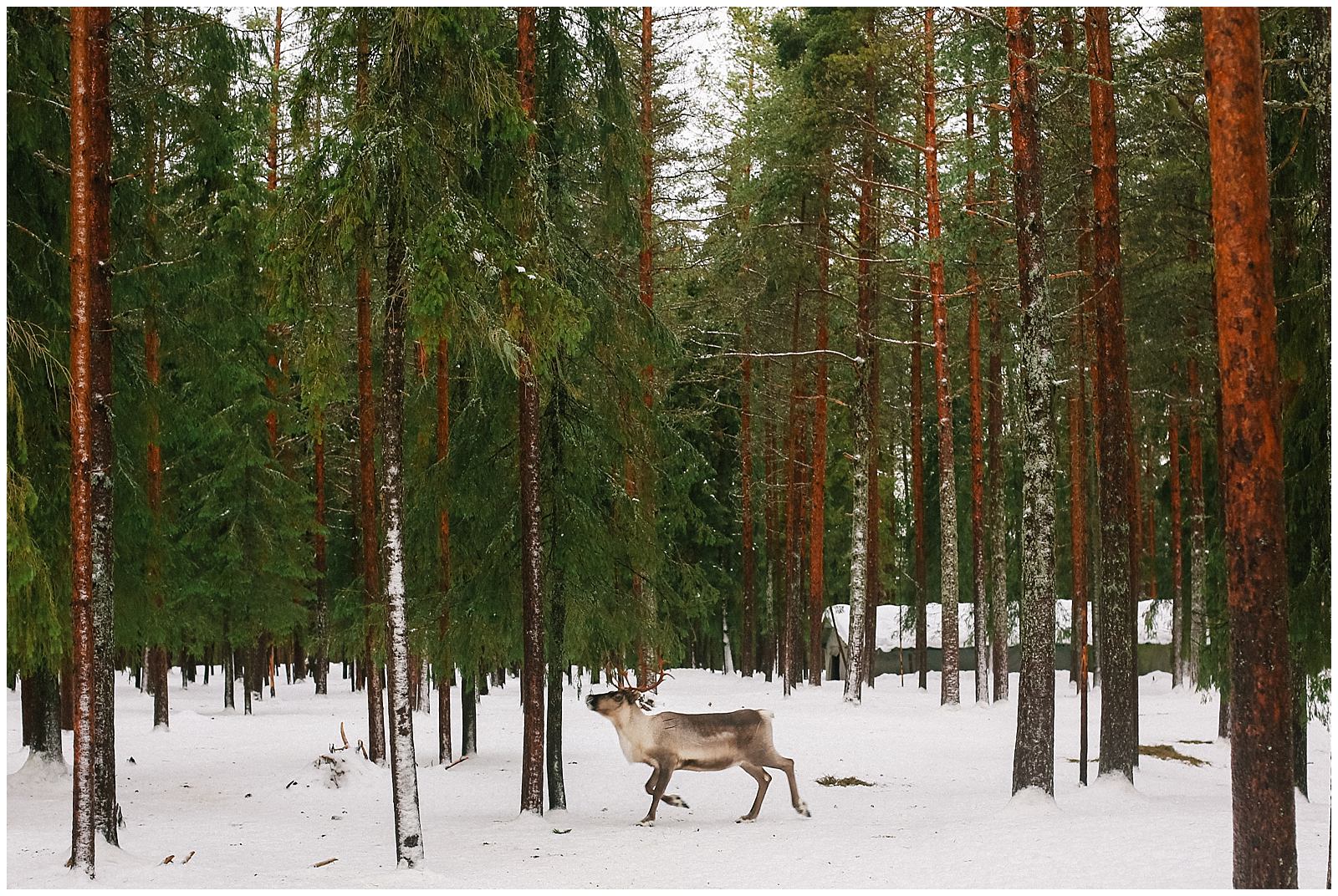 Clumps of foamy soap bubbles cover the trees like giant wads of cotton. The snow here in Lapland Finland is powdery crisp and blindingly white. Acting as a natural light reflector, the snow casts a white haze through our cabin window. The glittery snow falls steadily, and the forests surrounding us are all incandescently white. In Finland, there is nothing but trees: towering pines and silver birches.