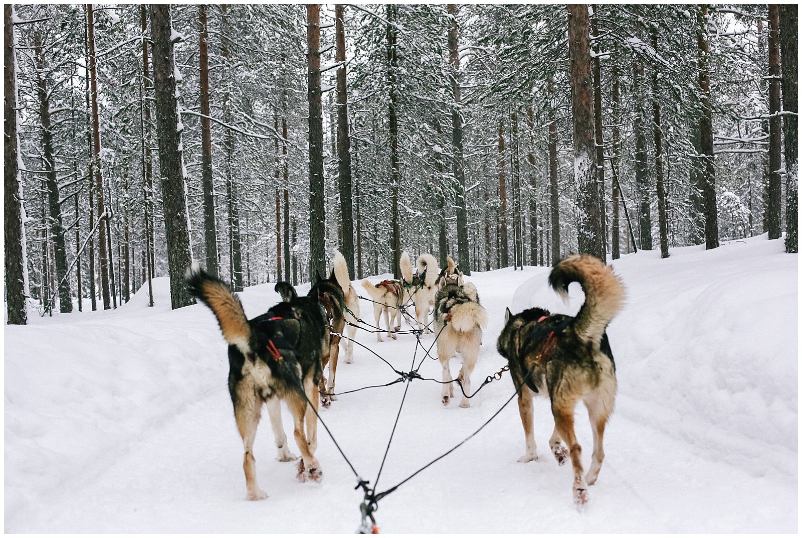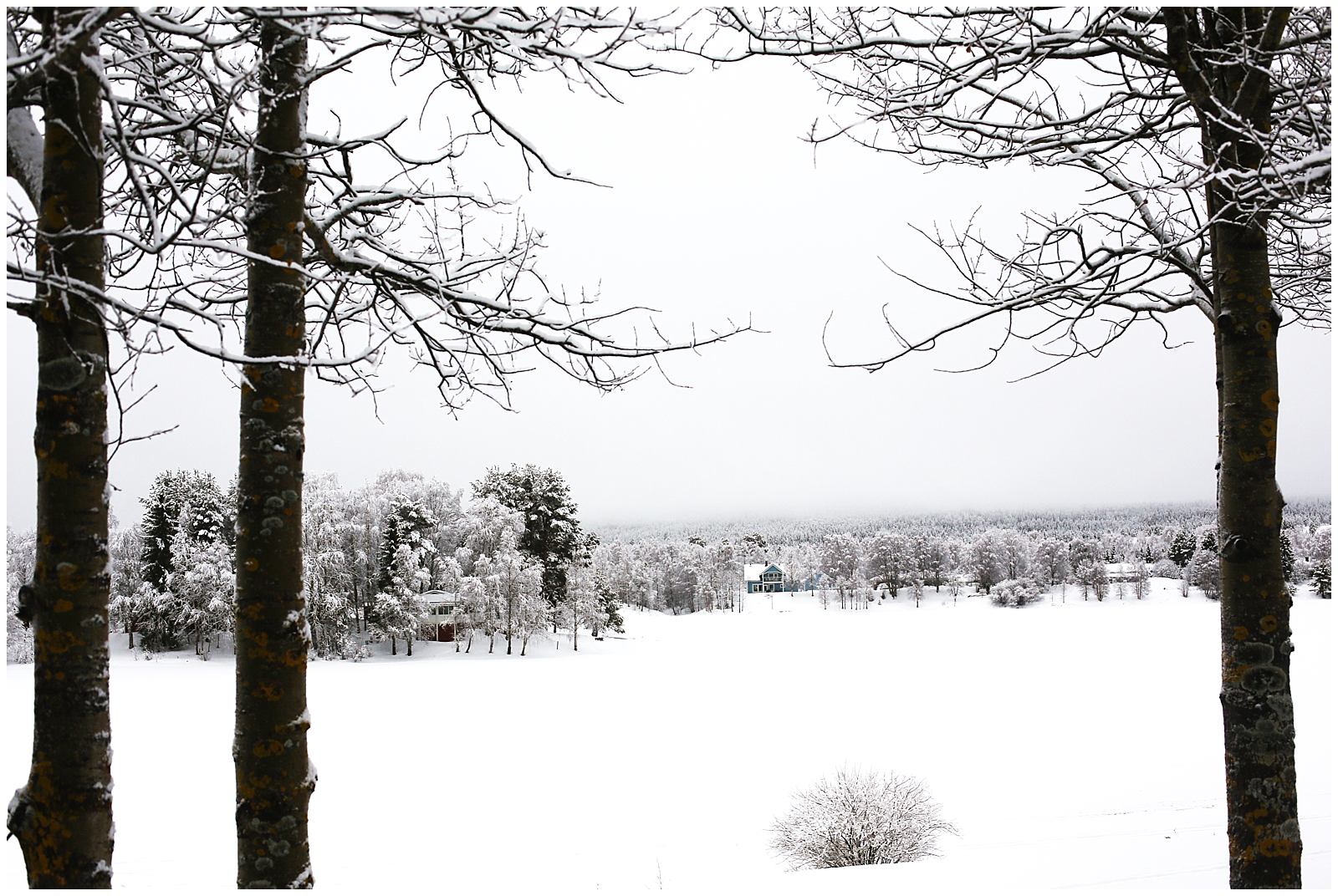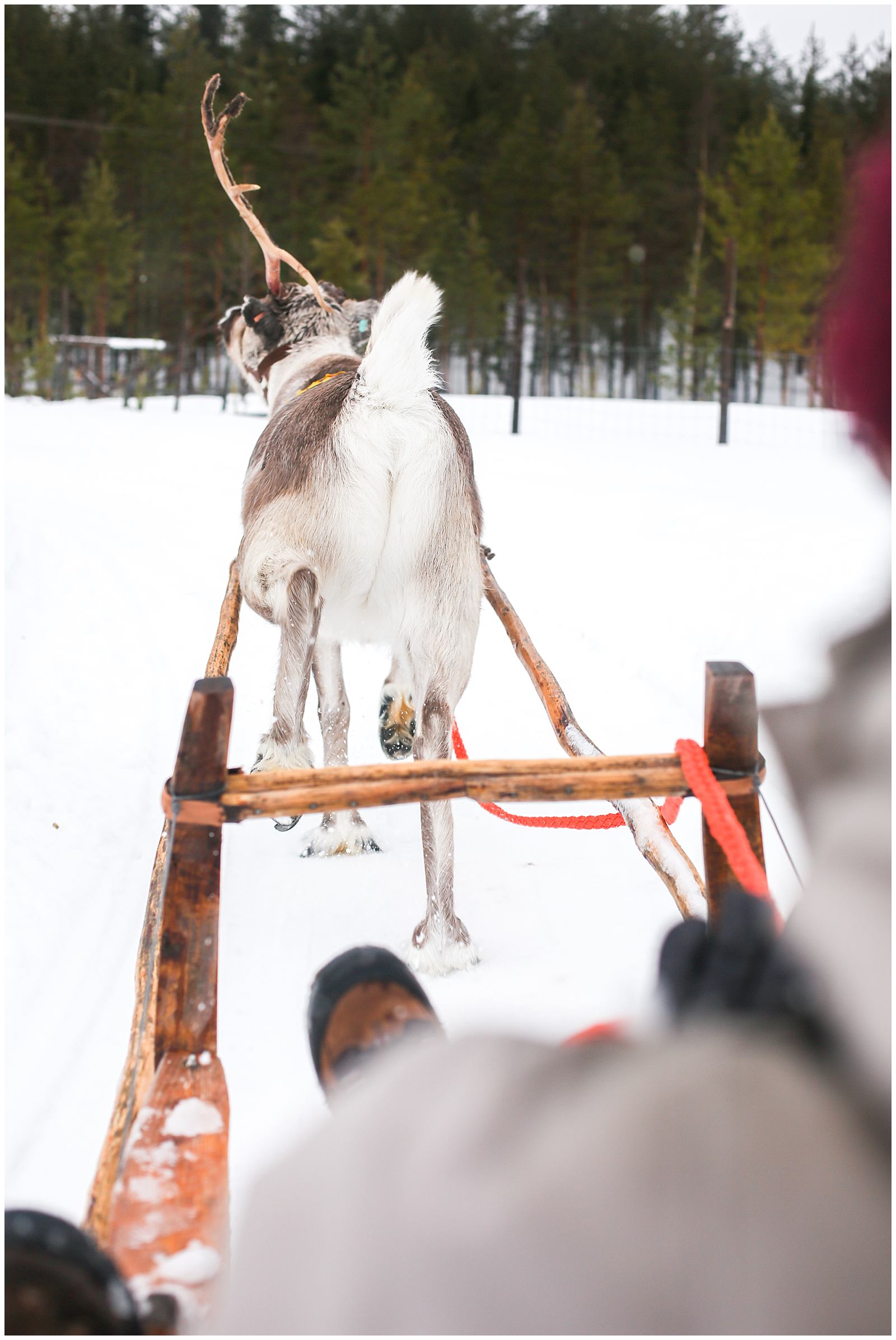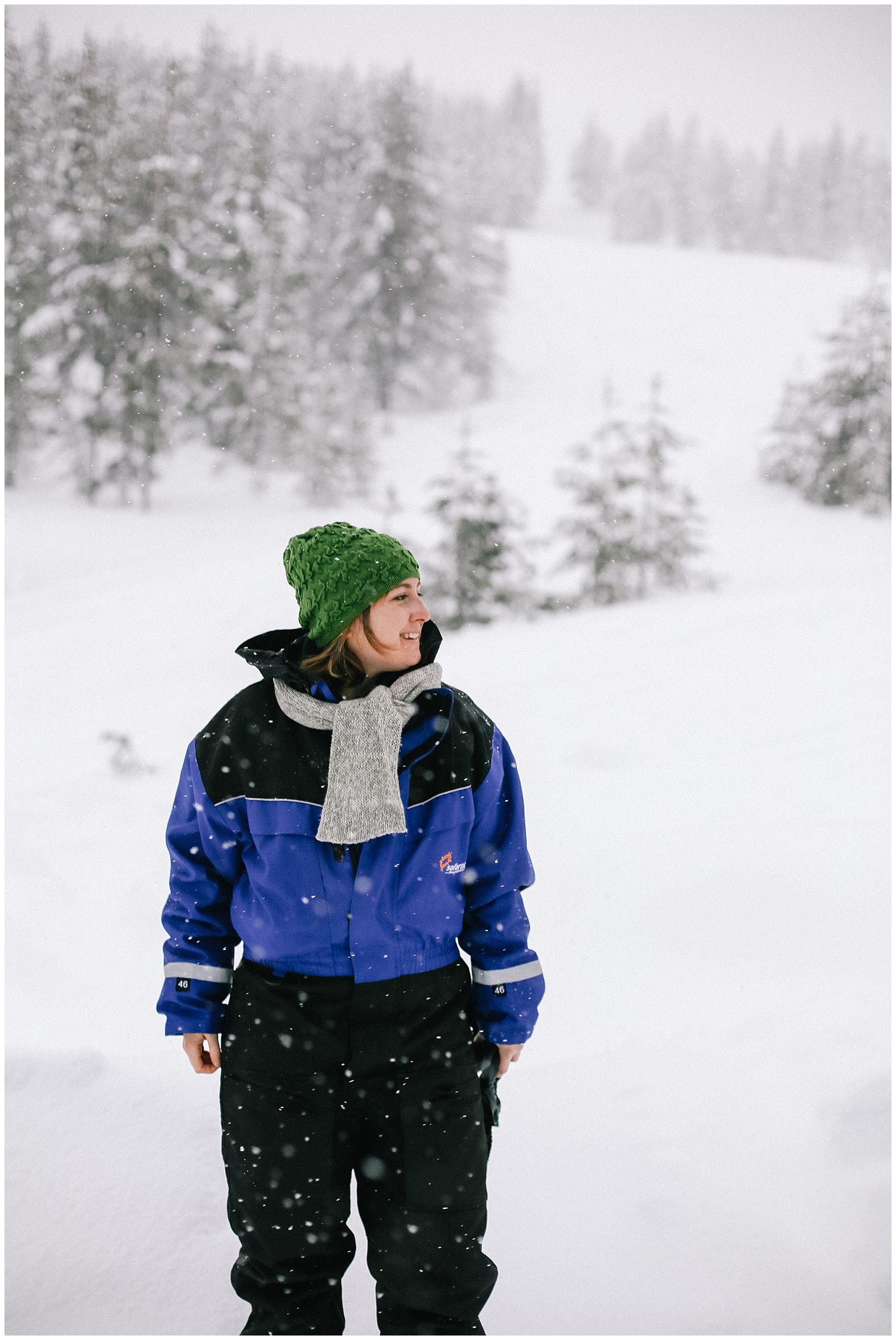 Clumps of foamy soap bubbles cover the trees like giant wads of cotton. The snow here in Lapland Finland is powdery crisp and blindingly white. Acting as a natural light reflector, the snow casts a white haze through our cabin window. The glittery snow falls steadily, and the forests surrounding us are all incandescently white. In Finland, there is nothing but trees: towering pines and silver birches.