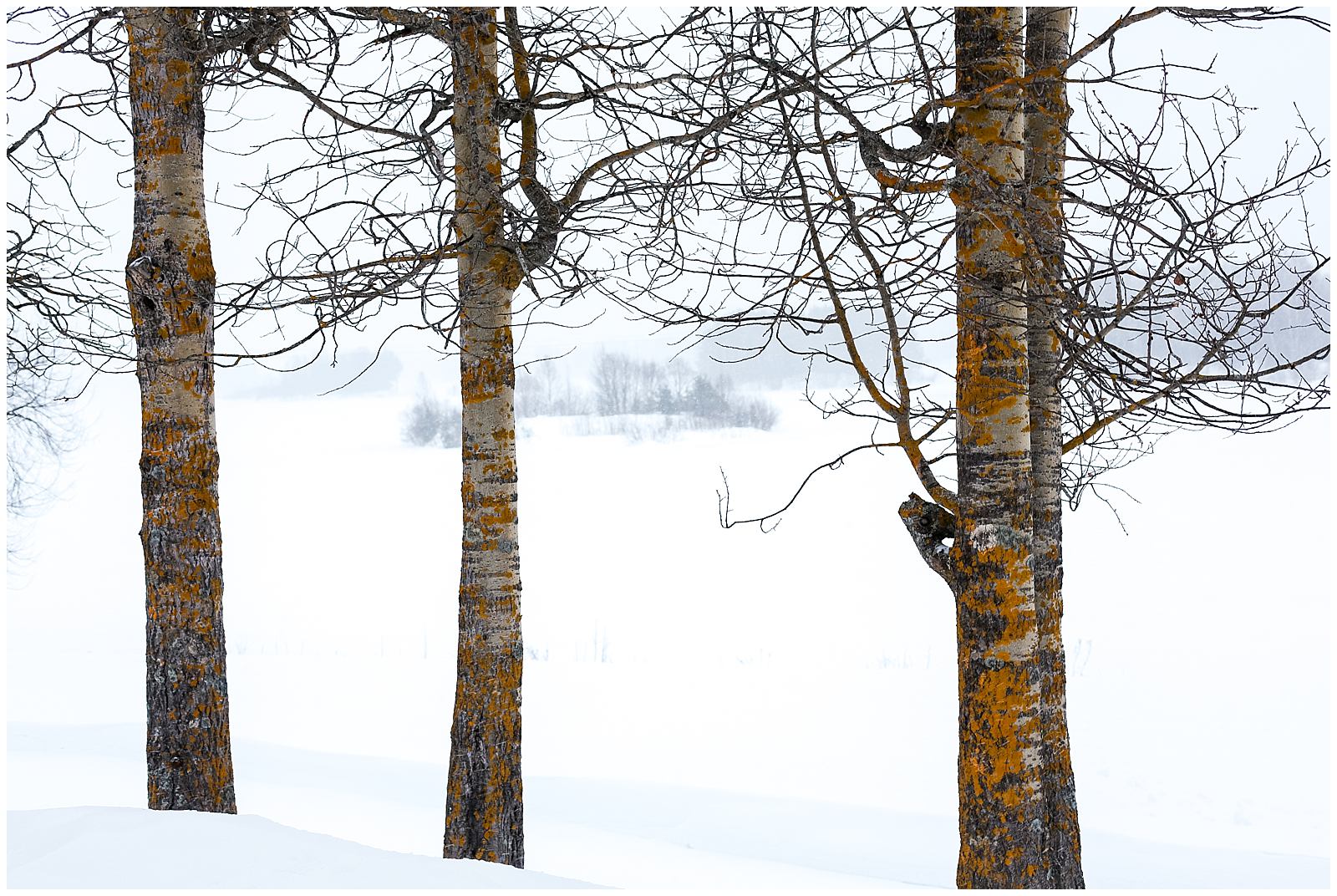 I sit on my cabin porch looking out over the frozen lake and peel the thin papery layers of bark from the shedding firewood I collected earlier. The bark peels and curls in thin, waspy sheets, revealing layer upon layer of neutral oranges, tans and whites. I peel it off, using the shreds to start a fire later, until the smooth, clean wood exposes itself. I run my finger along its smoothness: not a splinter to be had.