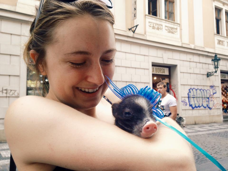 I set my stuff down and met a few backpackers, all of whom had plans to get seriously wasted at the bar crawl that night. They asked if I would join them. Shyly, I responded that I was going to have to pass that evening. An evening devoted to drinking and getting sick simply isn’t my cup of tea. I’d rather find a cute bookstore and coffeeshop. Maybe I’d meet a kindred spirit and discuss books at a bookstore! That would be lucky. And it turned out: I did! I met a kindred spirit, Olaf, the very next morning during our free walking tour. I arrived in the small group of people, sporting my new sunglasses, and came to the conclusion that the boy standing next to me was possibly around my age and was also a solo traveler. “Are you backpacking solo, as well?” I asked. His face brightened, “I am!” Thus, sparking a wonderful friendship and prague-buddy Olaf is a Scorpio, currently living in Amsterdam, and was traveling with a great interest and passion in seeing the rest of Europe. We had many wonderful conversations sitting on benches and grasses in the park, hiking up a mountain to see Prague Castle, and seeing some piggies on the cobble-stoned street.