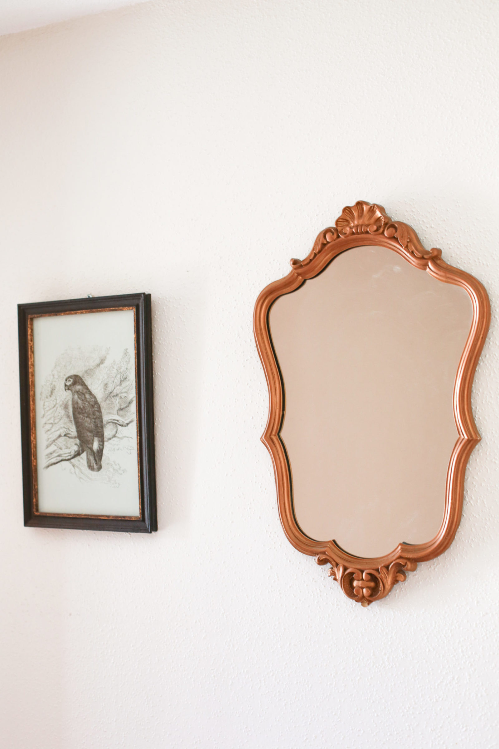 The lovely cat watercolor painting I found at a local artisan shop here in Strasbourg, and the painting of Peter Pan and the Neverland pirate ship I purchased from Disneyland back when I was a teenager. You’ll also notice we have a bird-theme going on in our living room…Alex and I love to bird-watch (we find plenty of them in the forest outside our window!) , and these colorful birds reminded us joyously of Pirates of the Caribbean.