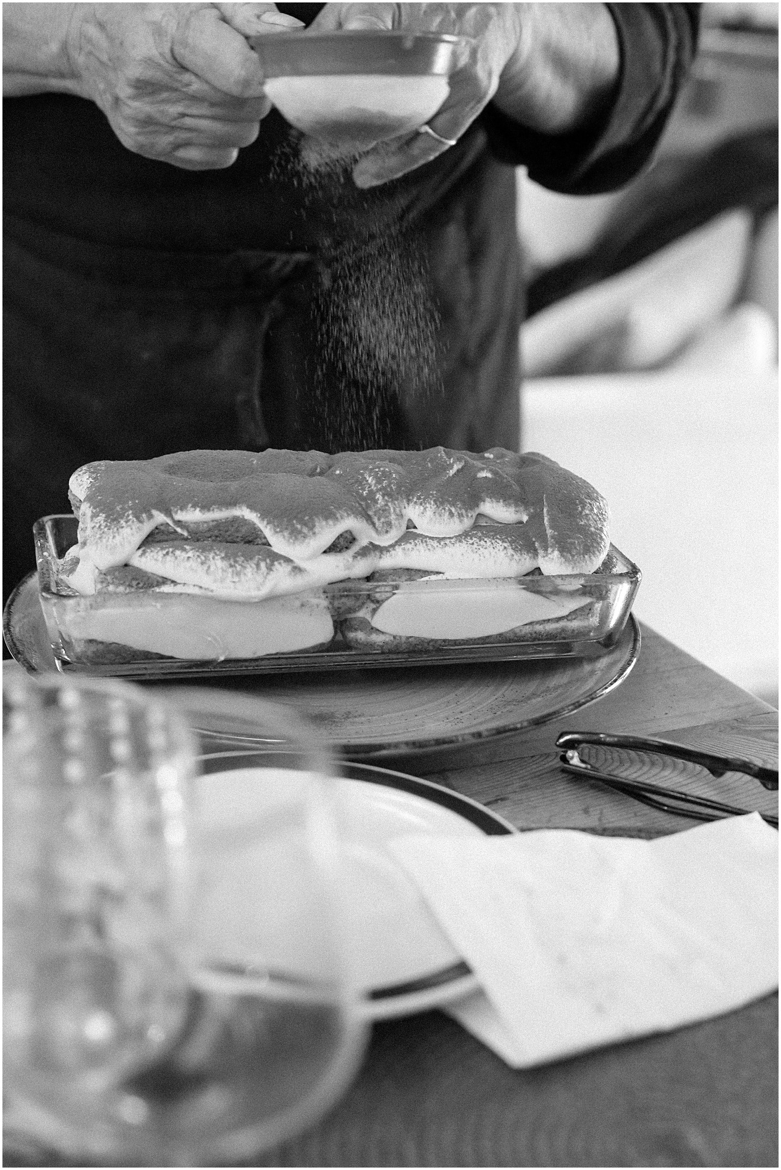 I sang along loudly to Bruno’s Uptown Girl and helped out every so often with the eggplant Parmesan, adding the layers of mozzarella and chunks of sweet Italian tomatoes to the dish. Lastly, after the raviolis, artichoke, salad and eggplant were finished, Claudia chilled the coffee and layered the whipped creamy foam with the cake layers: hmmm my favorite, coffee-drenched tirimisu.