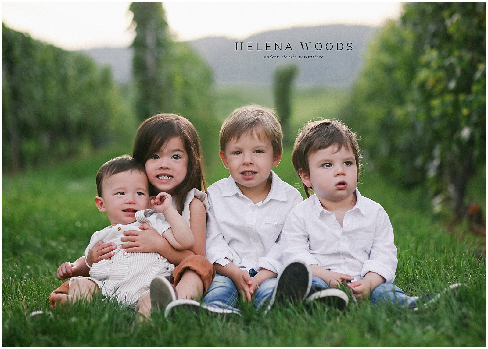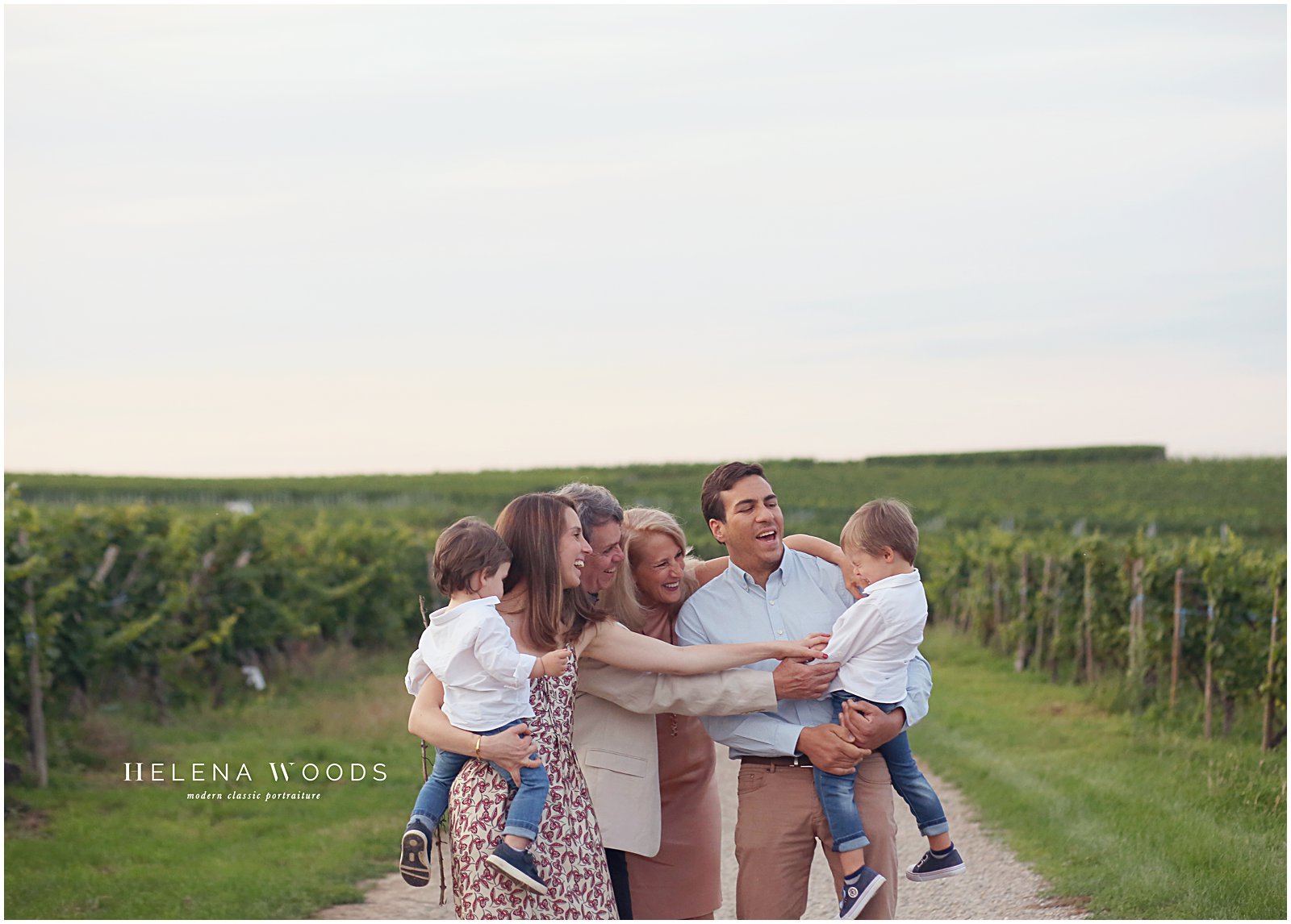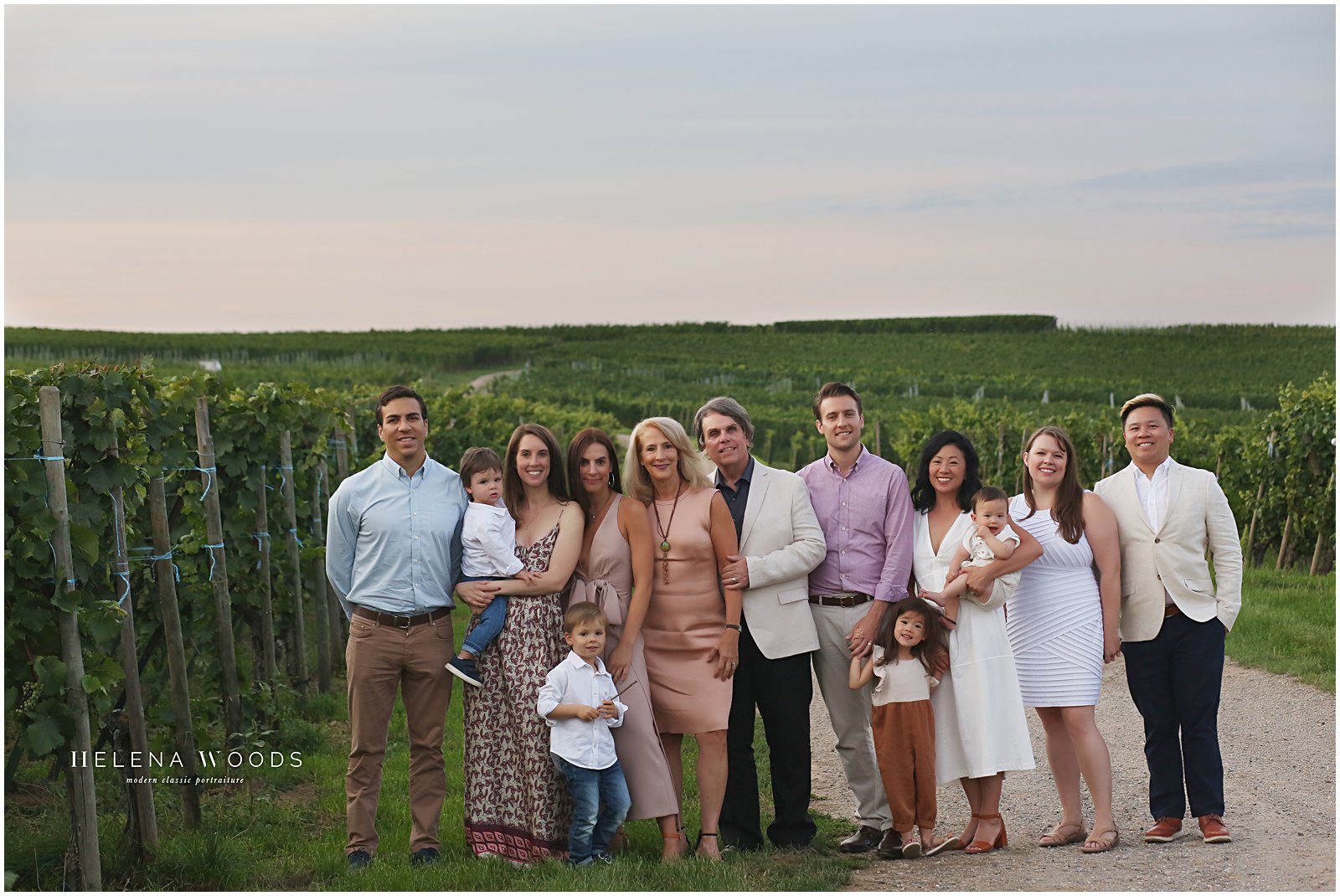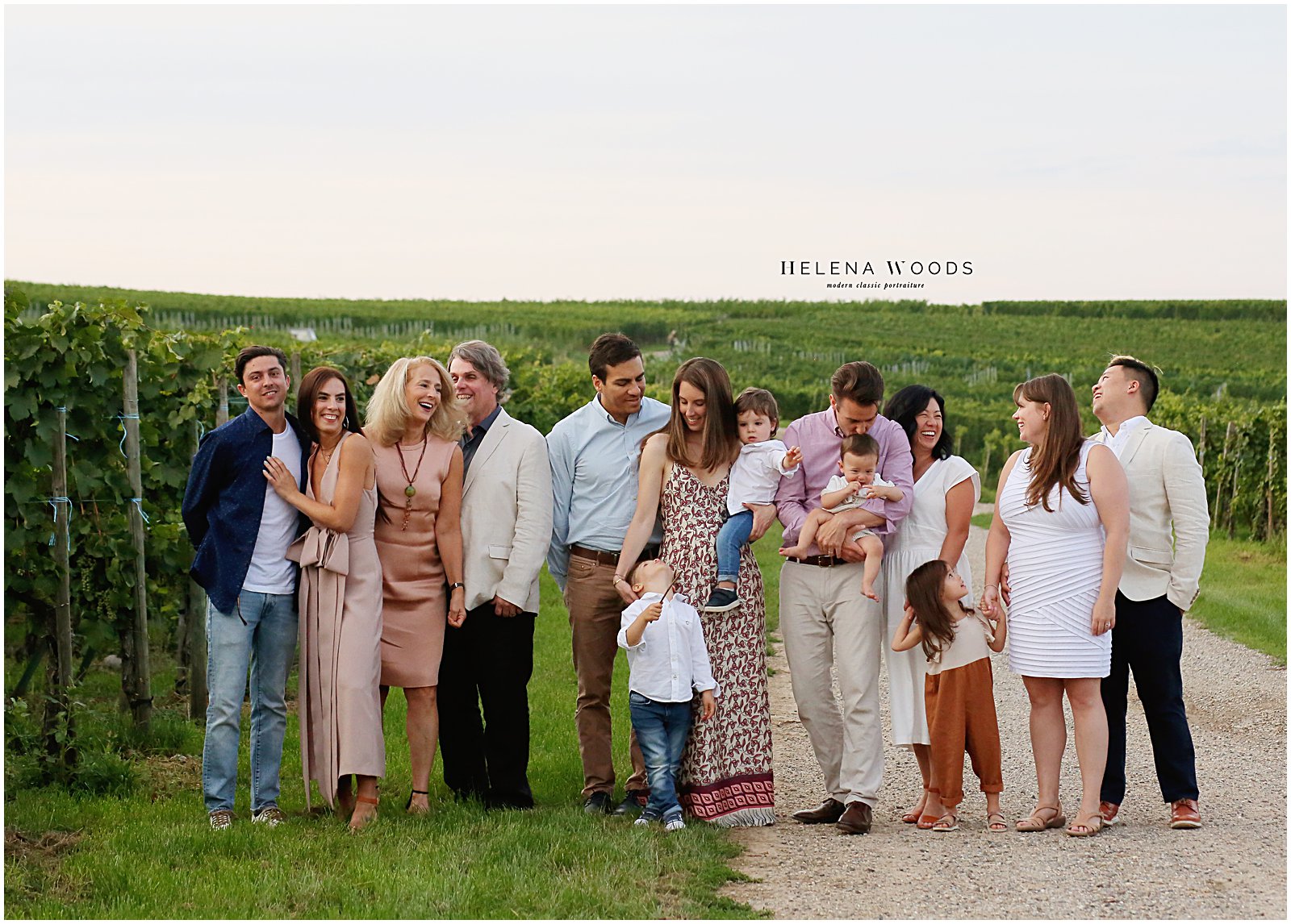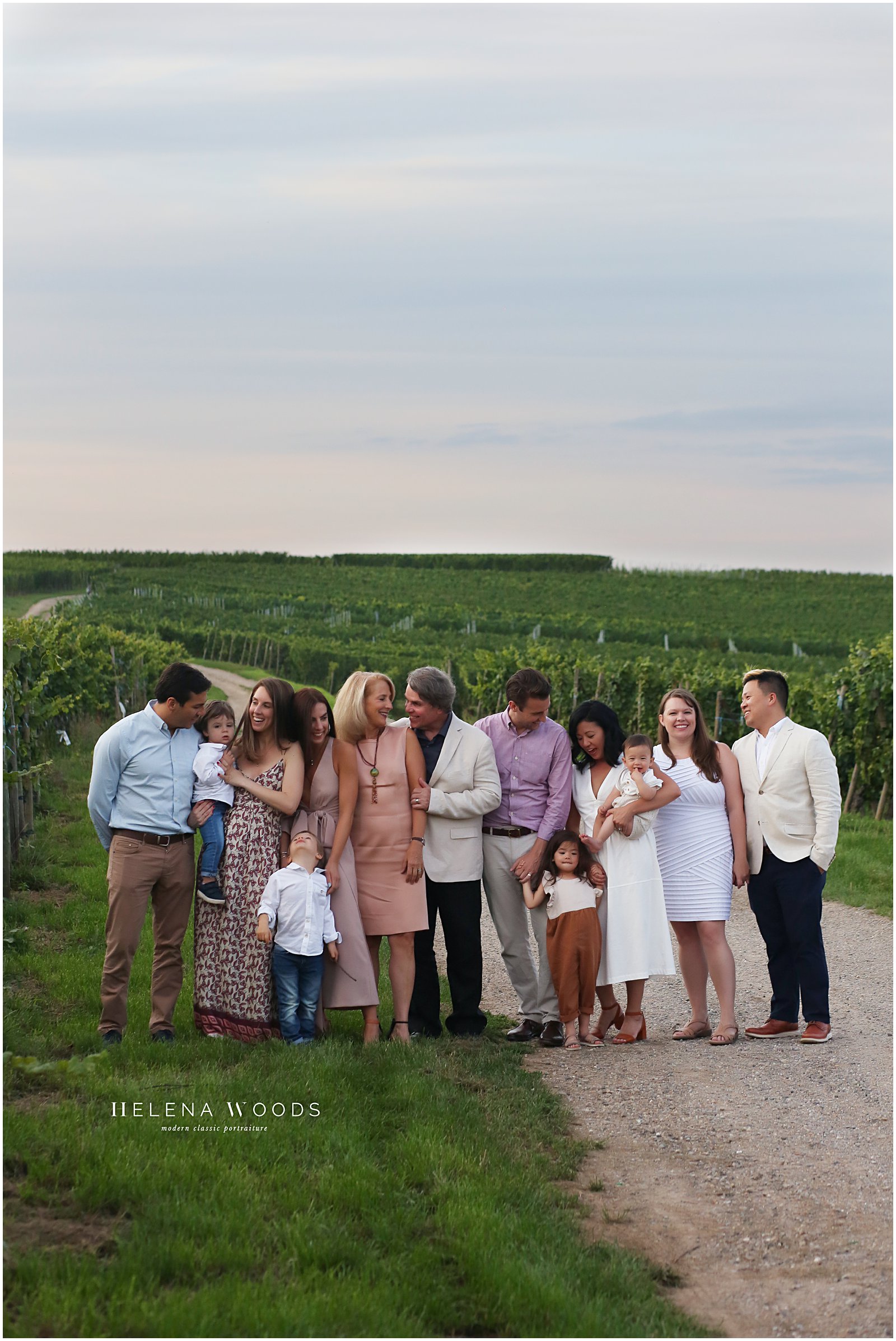 We piled out of the car and I started out the session with the trickiest and most challenging photo for family photographers: the sibling shot. I photographed the two oldest toddlers together and then added their younger siblings onto their laps, said a few jokes and got the shot quickly before moving onto the must-have shot of the extended family together. An extended family reunion portrait session can be challenging, but this one wasn’t!
